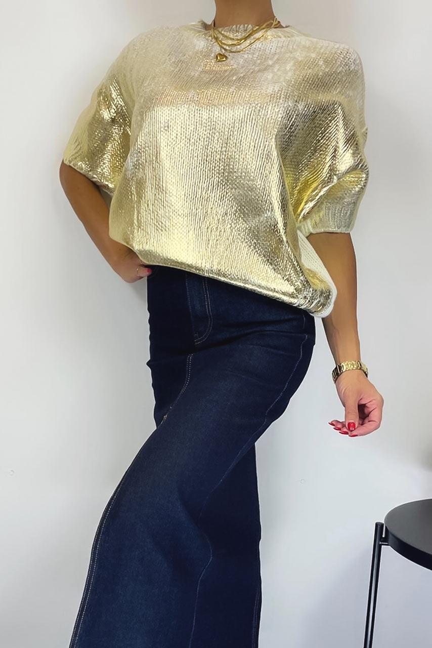 Metallic πλεκτή μπλούζα σε χρυσό Metallic πλεκτή μπλούζα σε χρυσό