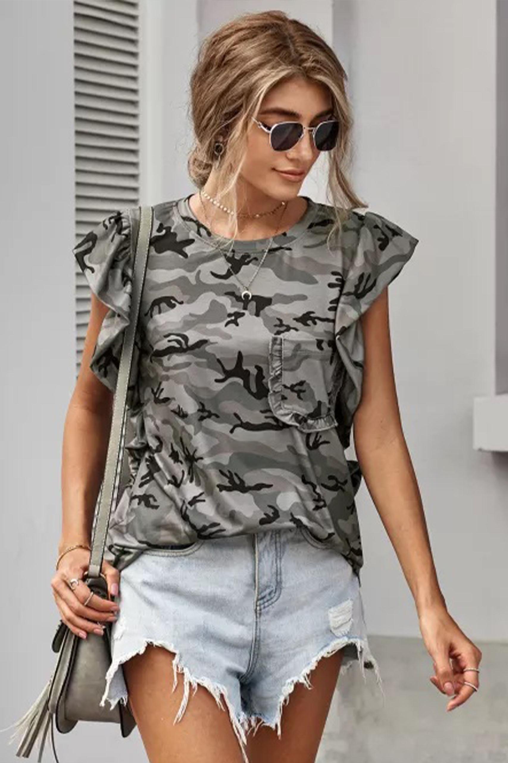 Κοντομάνικο military t-shirt με βολάν στο μανίκι.