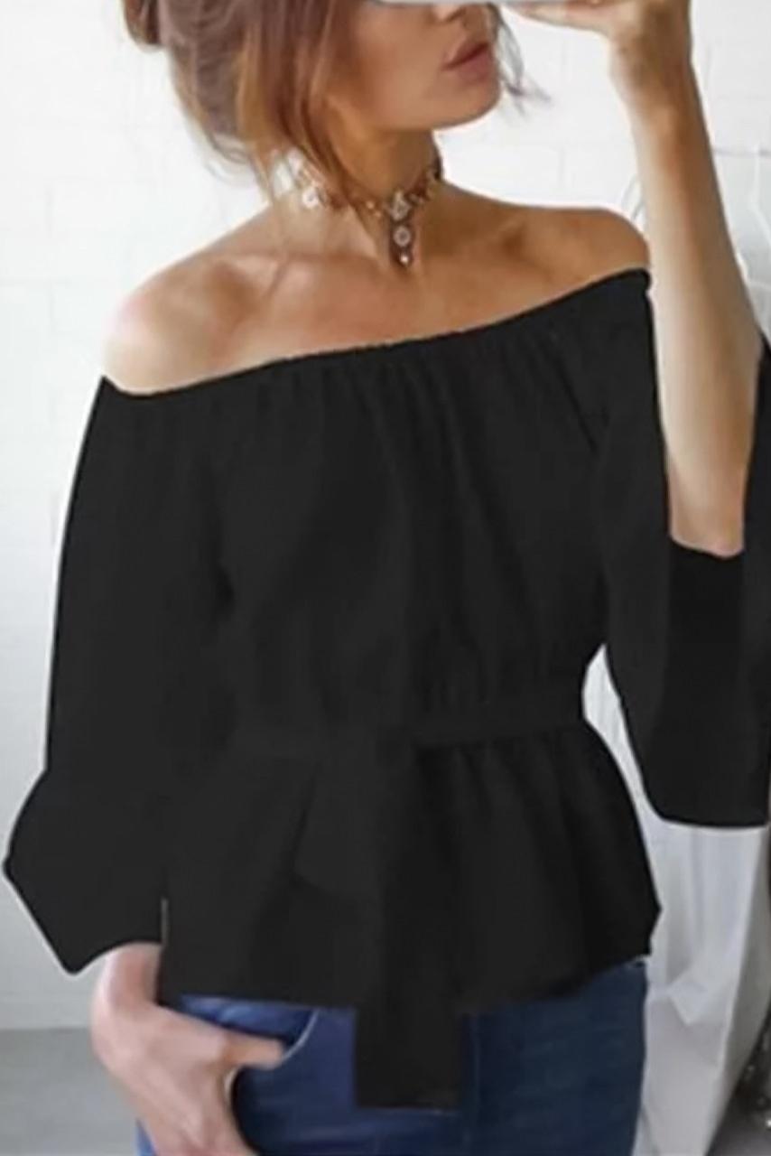 Off shoulder μαύρο top με ζώνη για στην μέση.