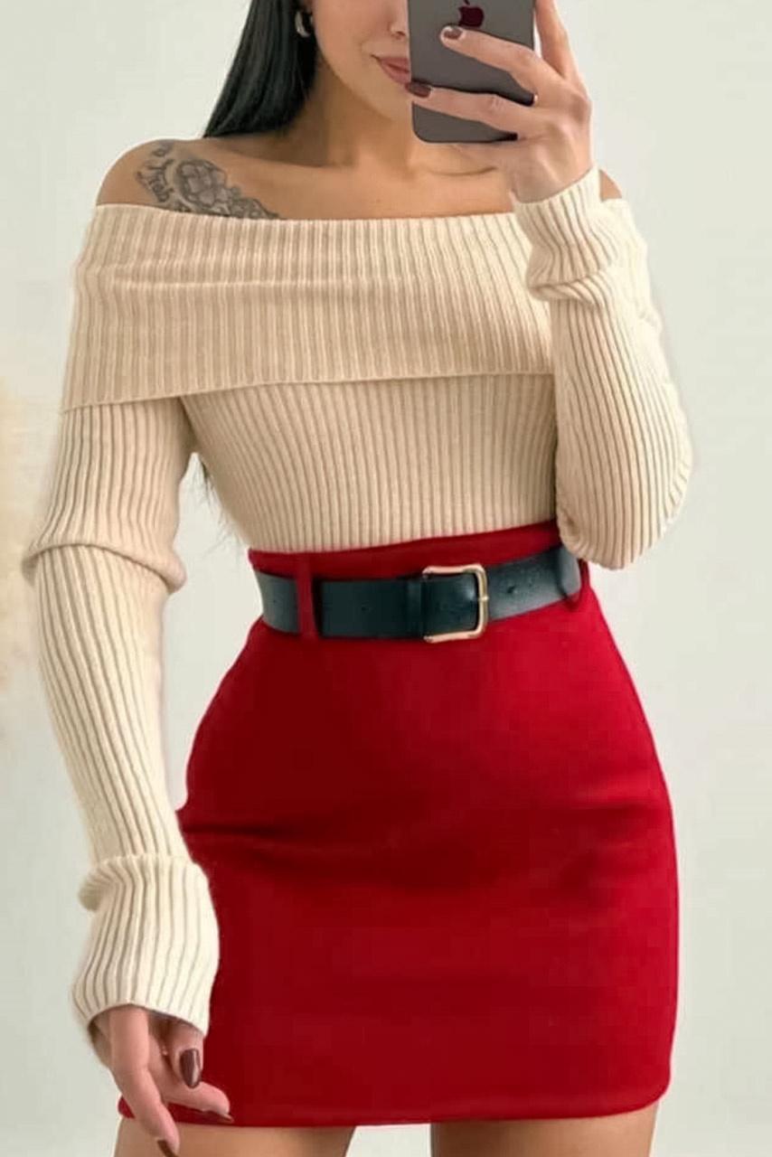 • Μακριά rib μπλούζα | Off shoulder