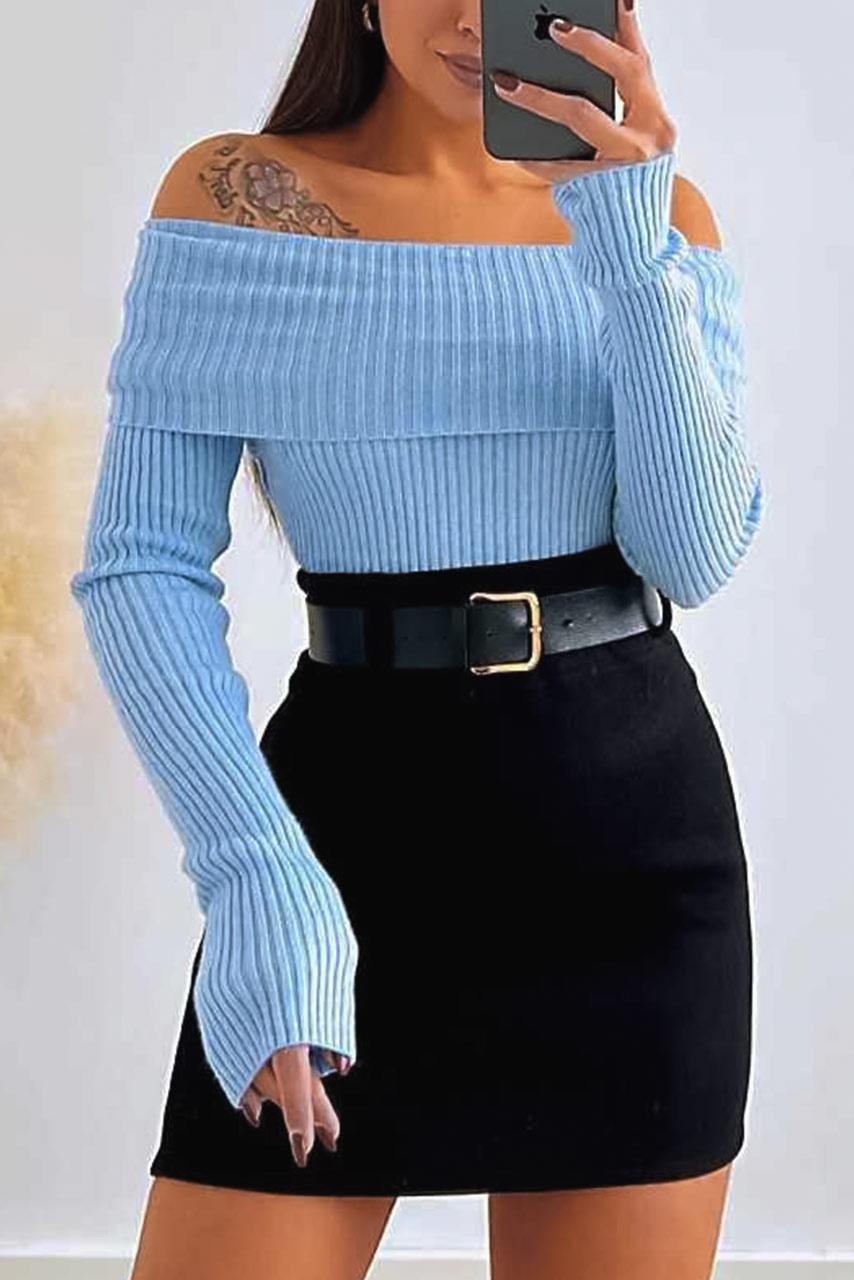 Off shoulder τοπάκι rib μπλε Off shoulder τοπάκι rib μπλε