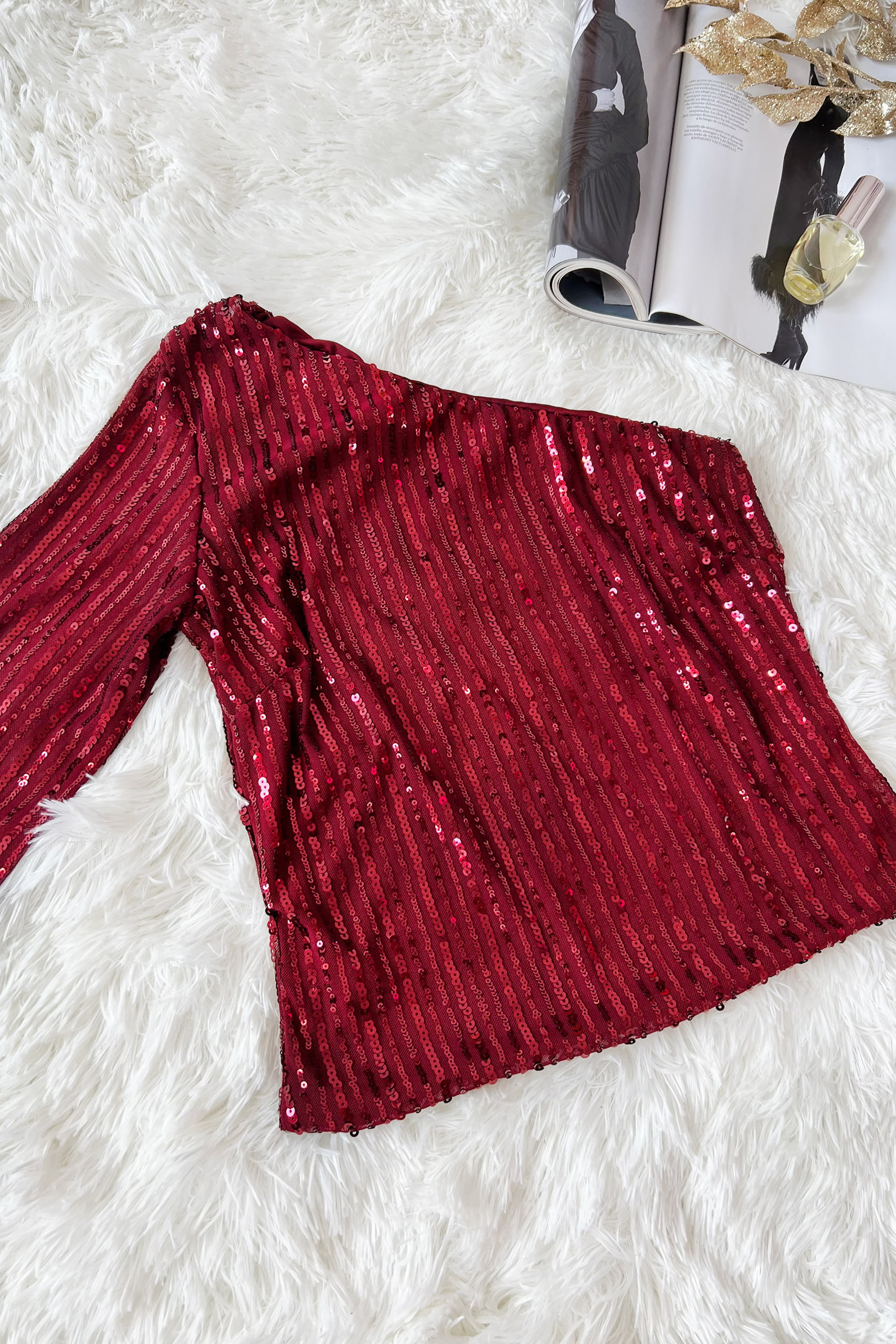 One shoulder τοπ με παγιέτα και έναν ώμο σε τρεις μεταλλικές αποχρώσεις.