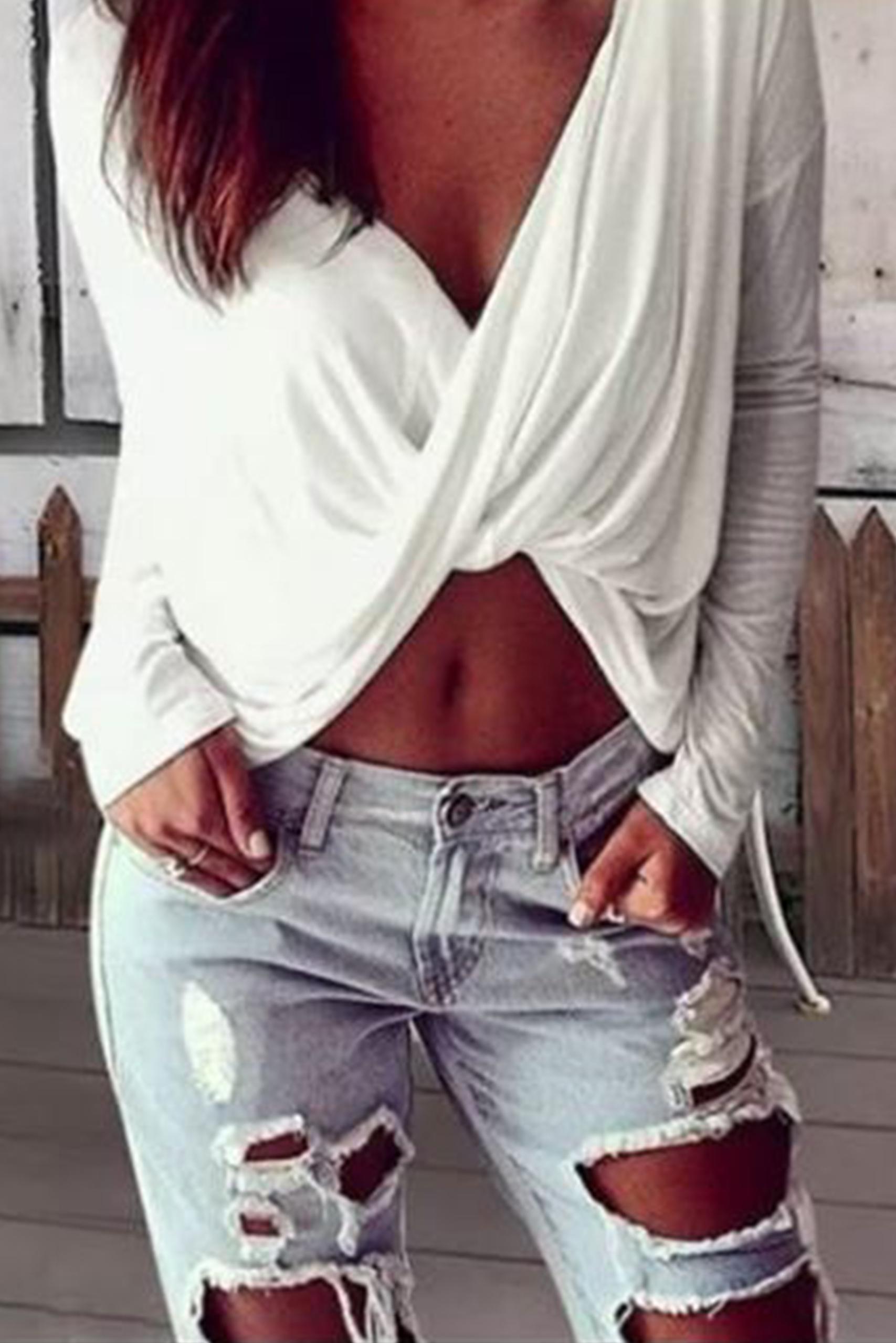 • Κρουαζέ πολυμορφική μπλούζα | Κόμπος μπροστά | Φοριέται με δύο τρόπους | Μακρυμάνικη