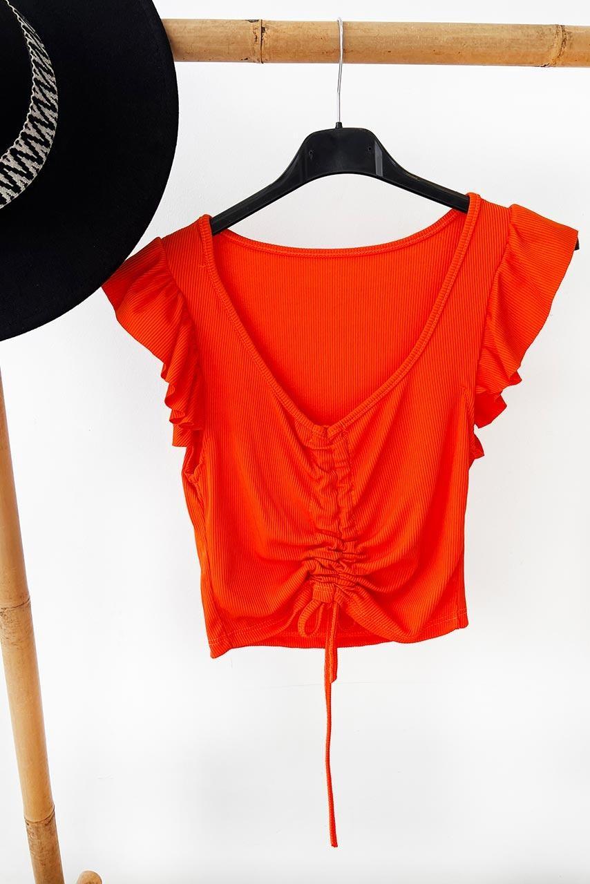 Pop girly crop top με σούρα σε έντονες καλοκαιρινές αποχρώσεις με σούρα και κορδόνι μπροστά.
