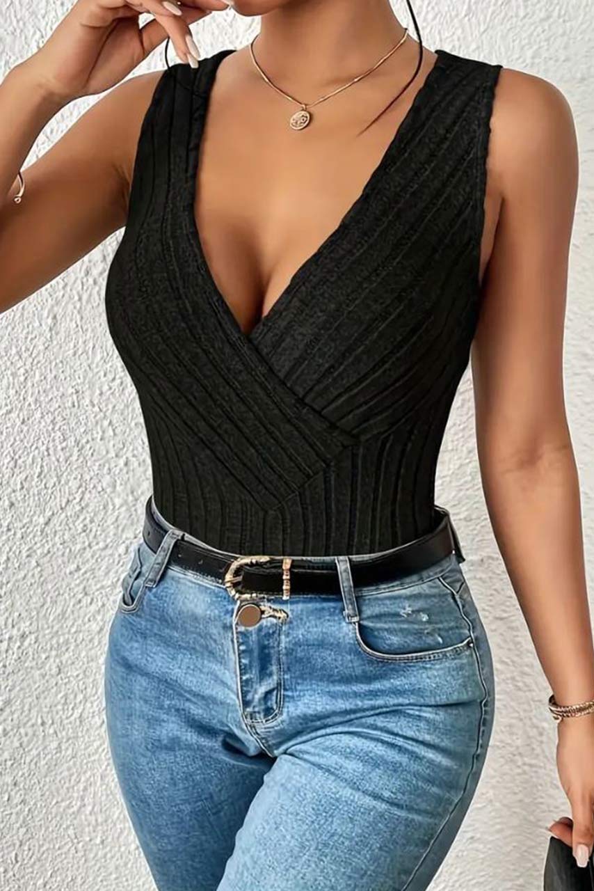 Ριμπ αμάνικο τοπ με V Ριμπ αμάνικο τοπ με V