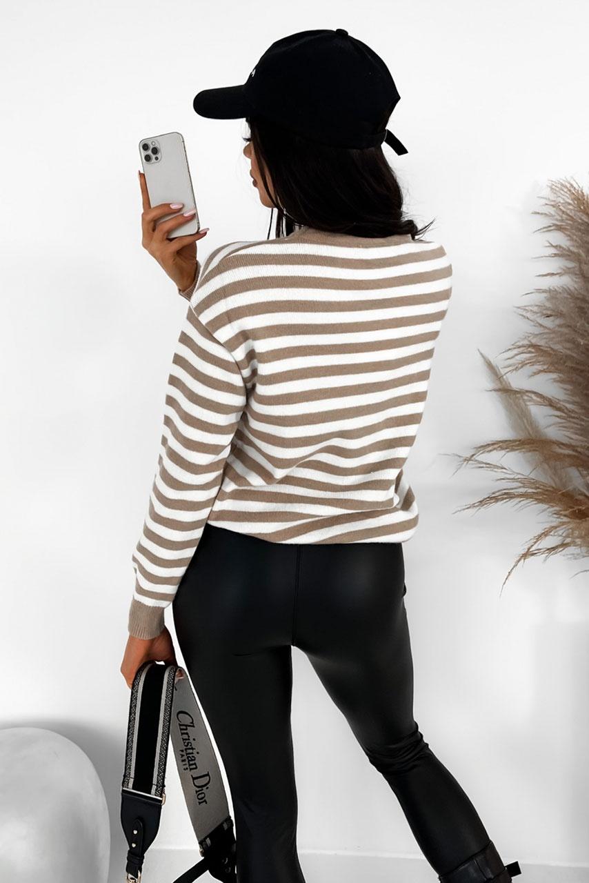 Ριγέ μακρυά μπλούζα μπεζ