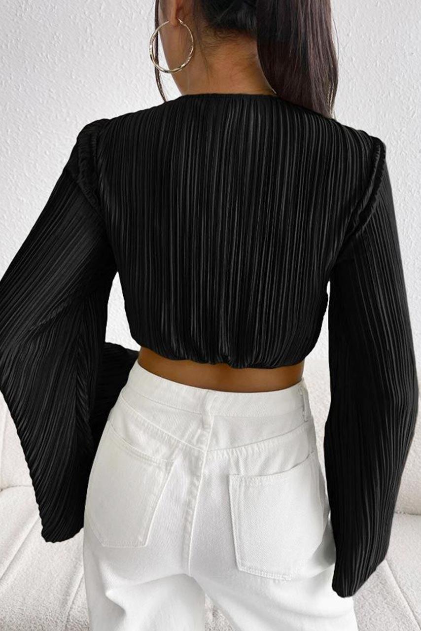 Ruched μακρυμάνικο crop top μαύρο Ruched μακρυμάνικο crop top μαύρο