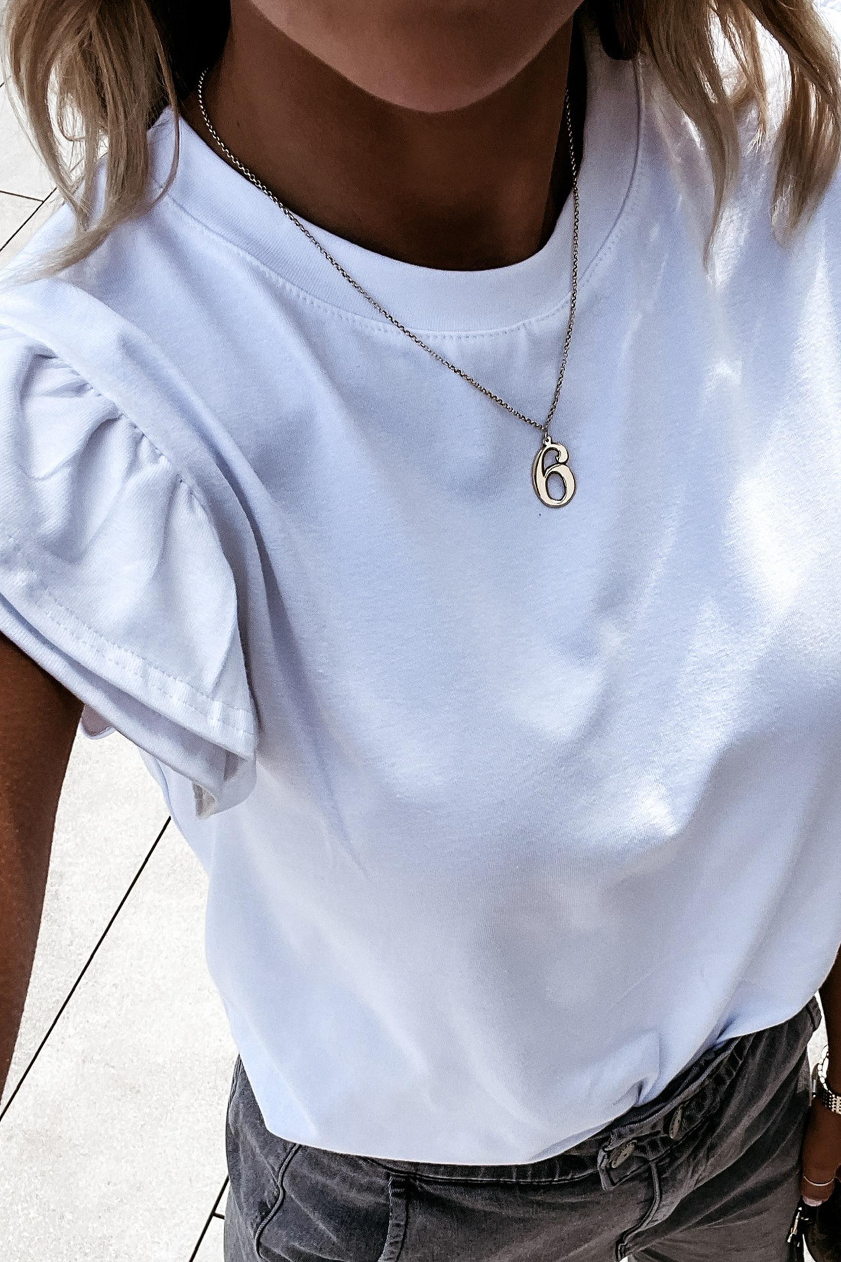 Casual chic λευκό τοπ με διπλό φραμπαλά στο μανίκι.