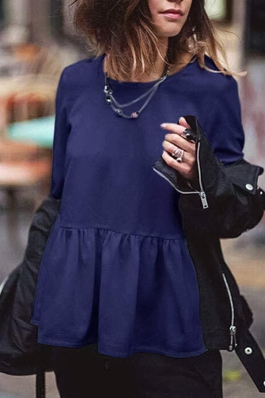 Ruffle μακρυμάνικο τοπ μπλε