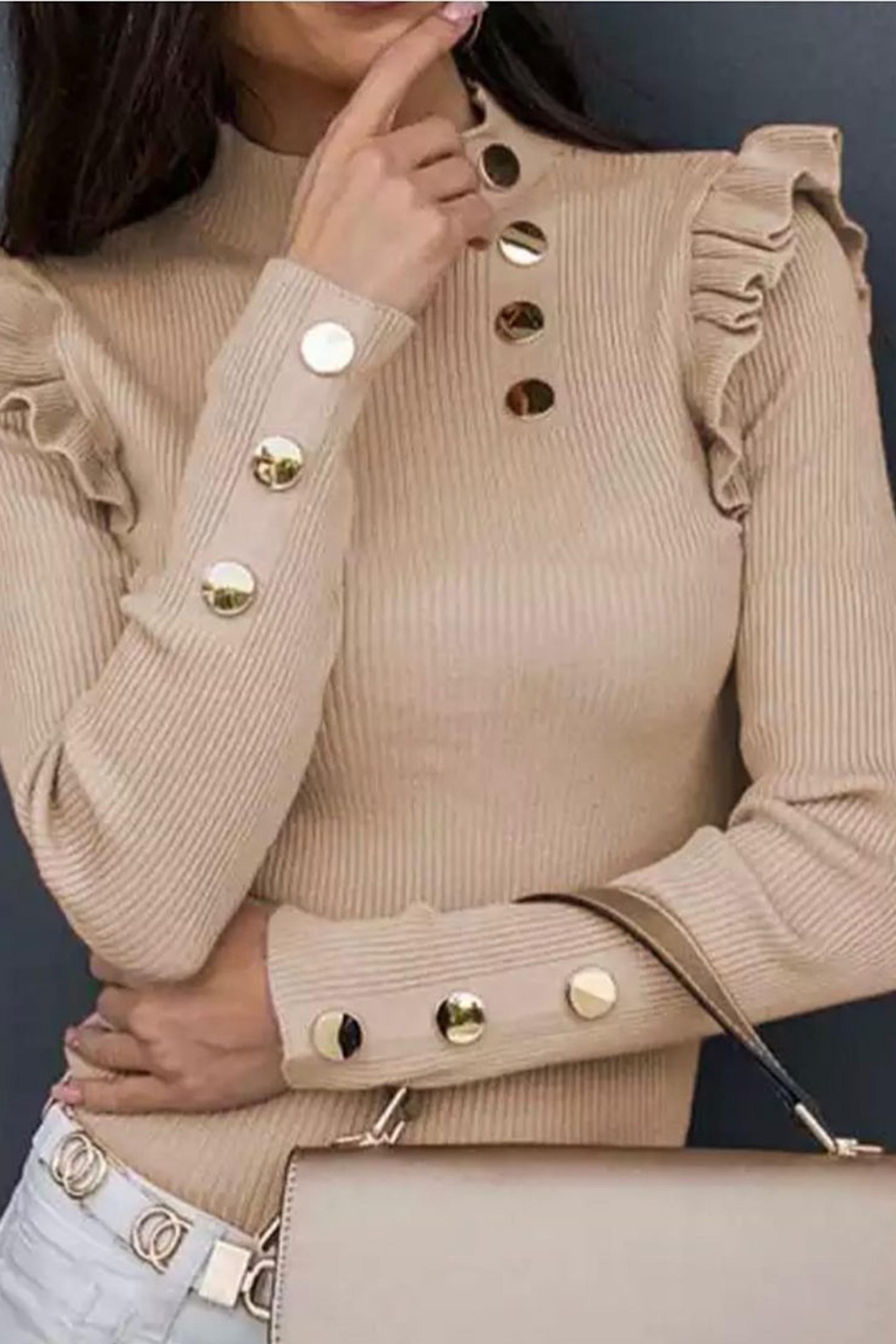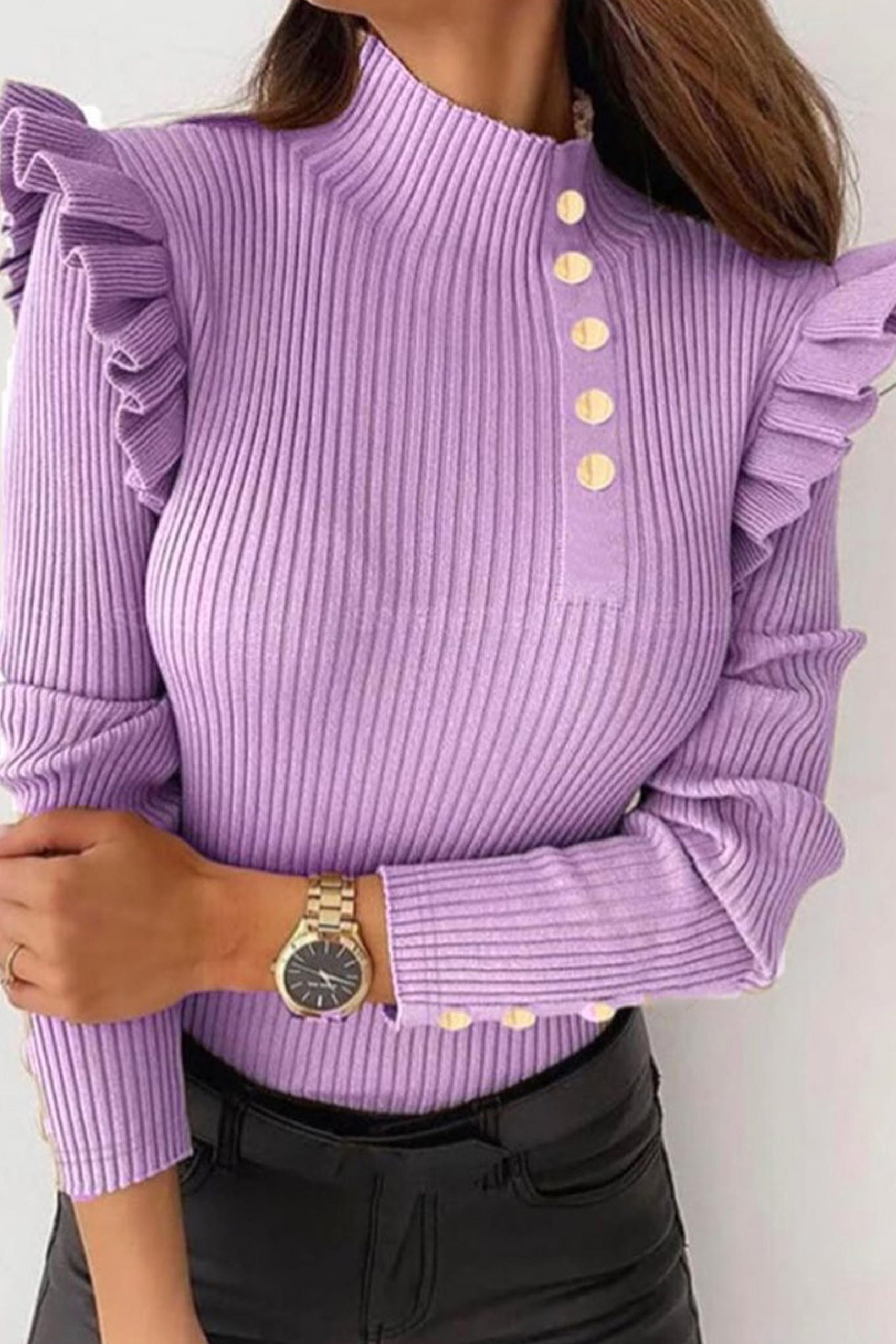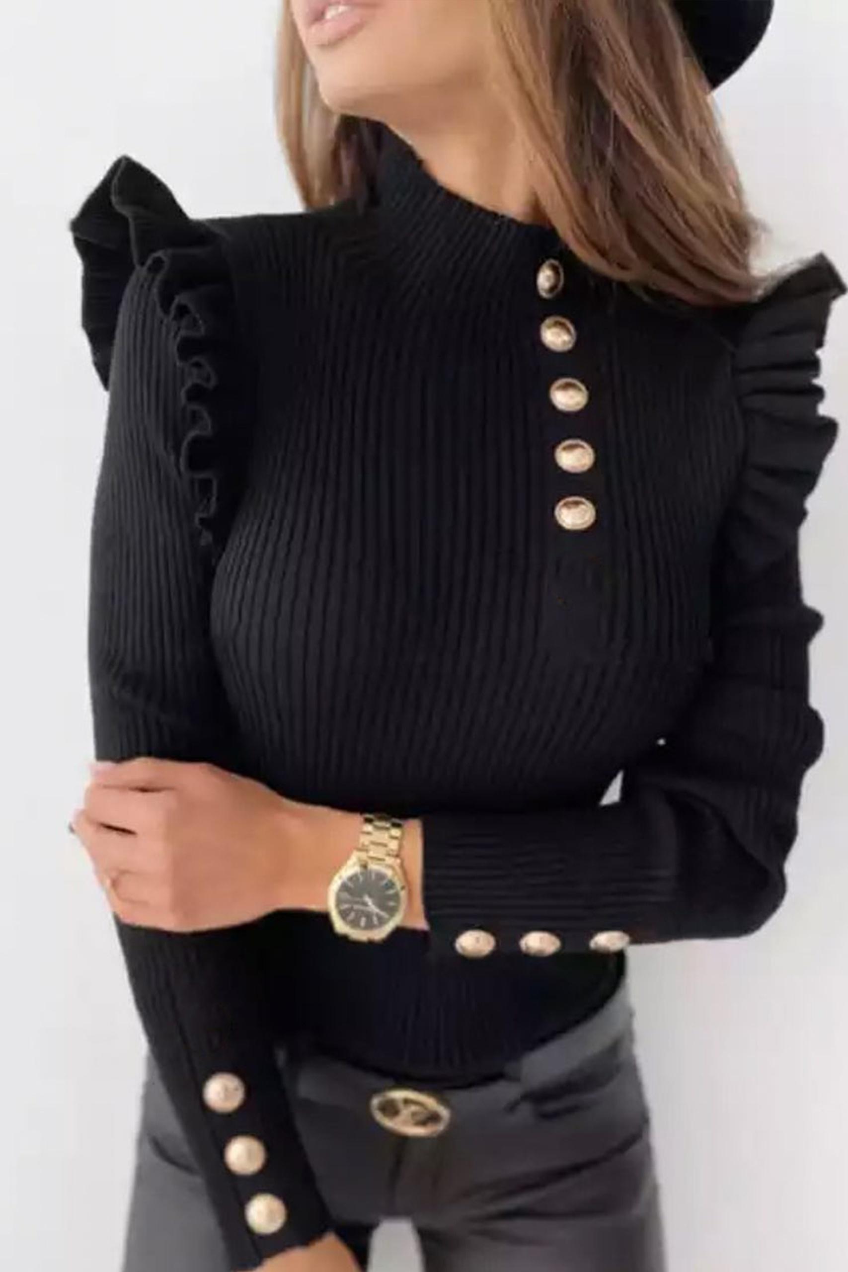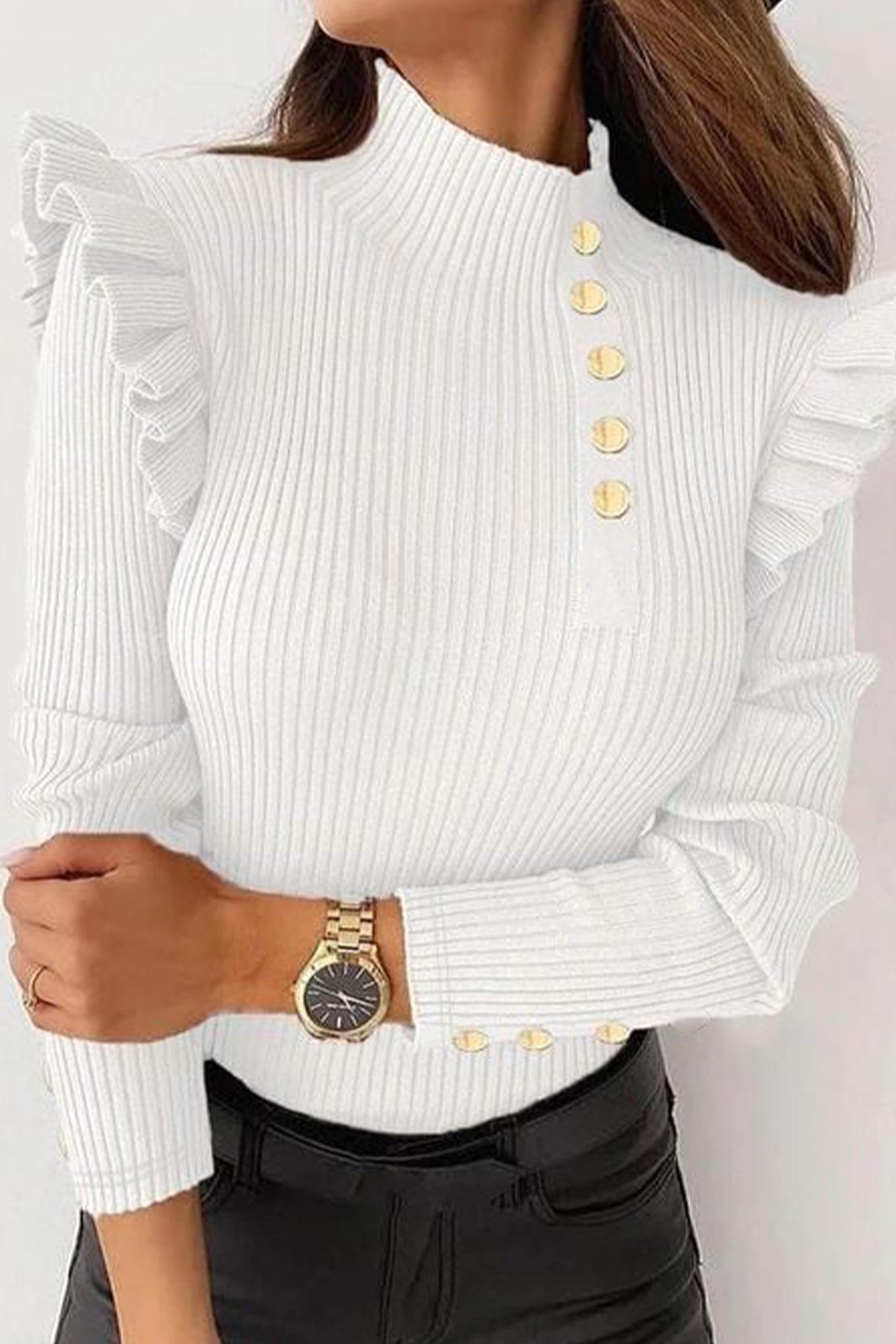 Ruffle rib τοπ με retro κουμπιά κατά μήκος της μίας πλευράς και σειρές βολάν.