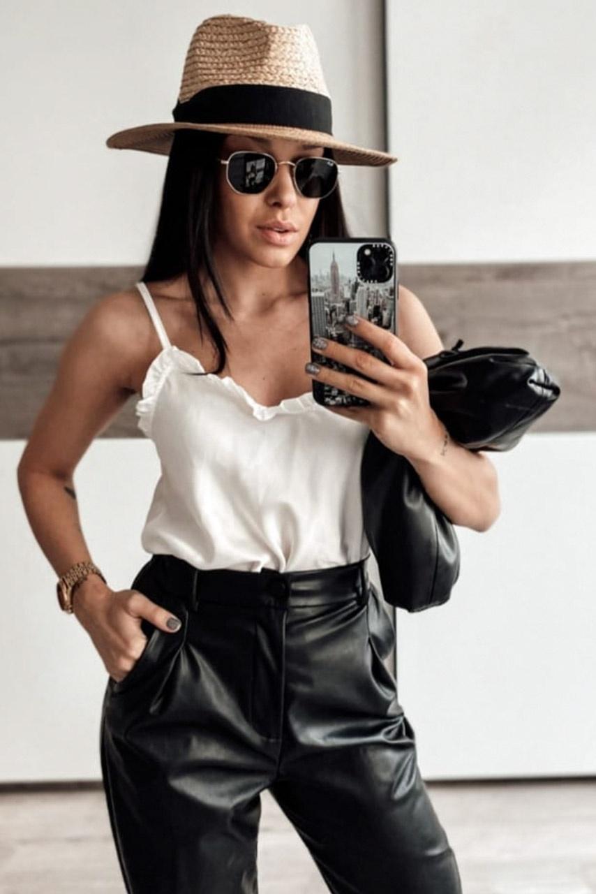 Satin cami τοπ με τιράντες, βολάν στο V σε τρεις ουδέτερες αποχρώσεις. Συνδυάστε τα κάτω από σακάκια ή πάνω από πλισέ φούστες για ιδιαίτερα γιορτινά ή επίσημα looks.