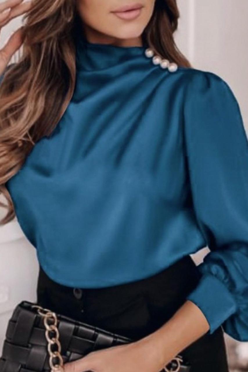 Satin τοπ με διακοσμητικές πέρλες μπλε