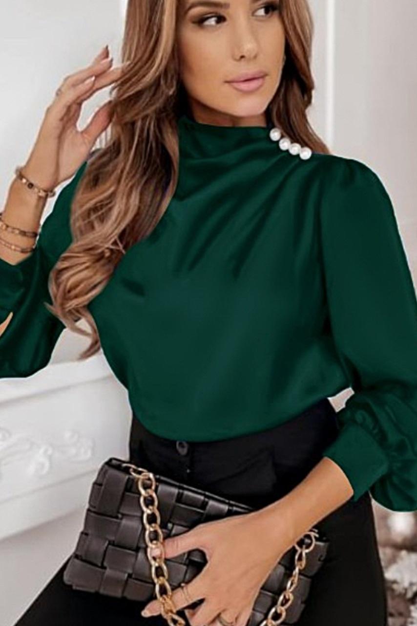Satin τοπ με διακοσμητικές πέρλες πράσινο