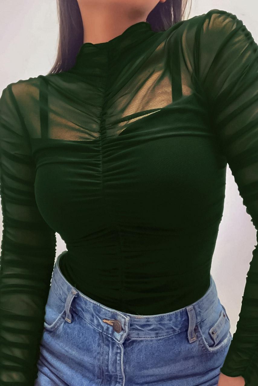 Glam retro see through ζιβάγκο με απαλές πτυχές σε χακί χρώμα με διάφανες λεπτομέρειες.