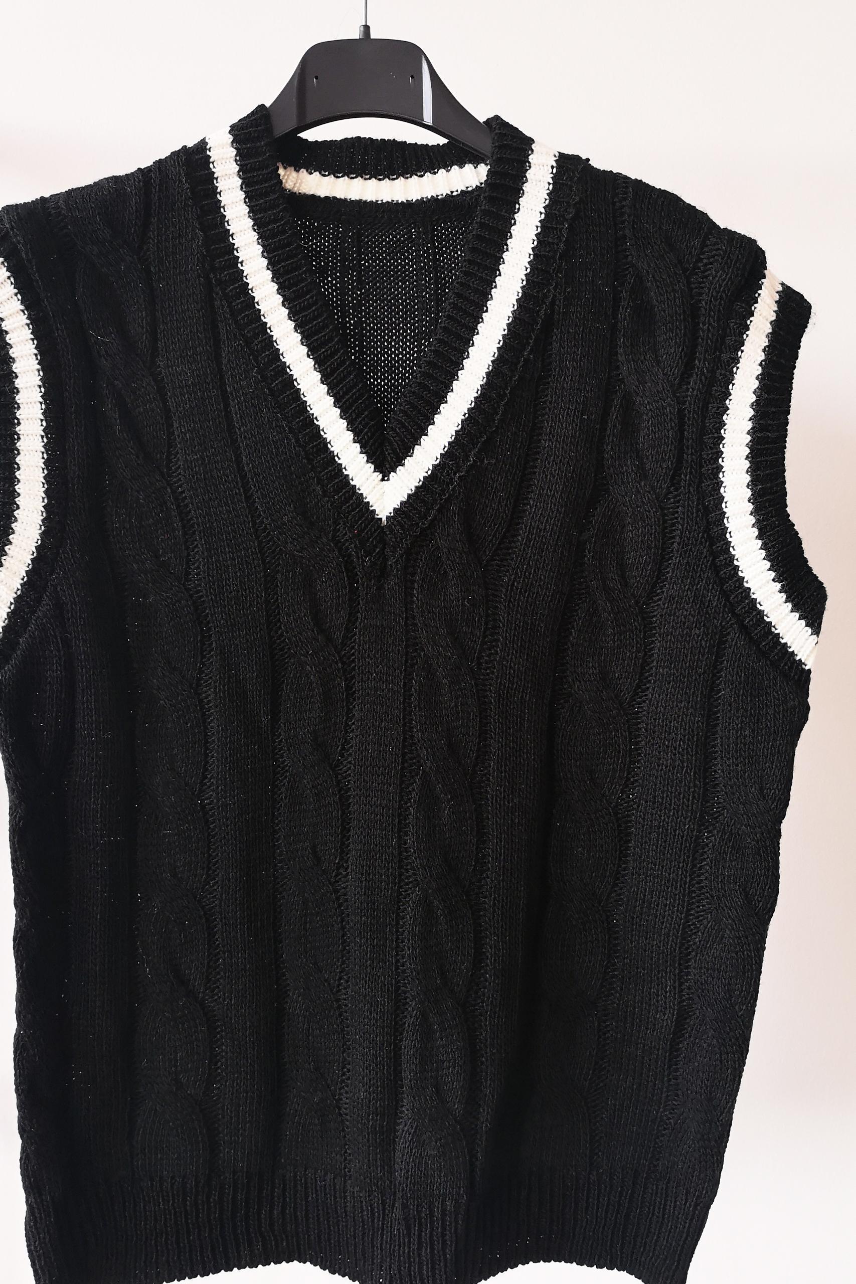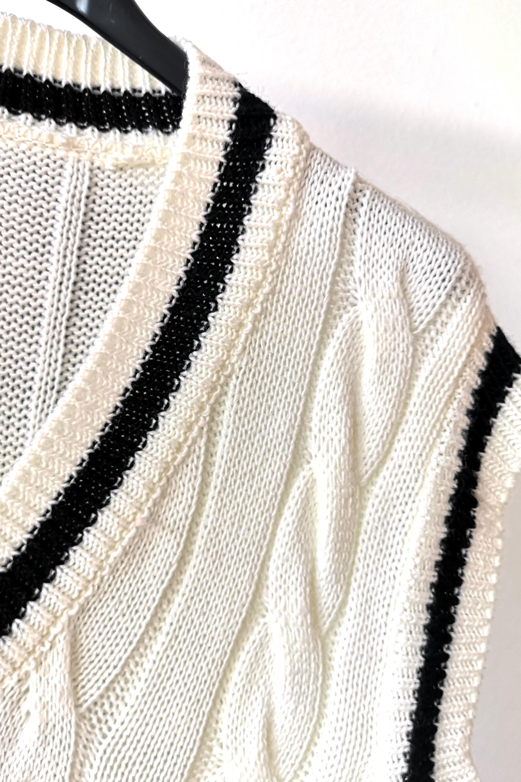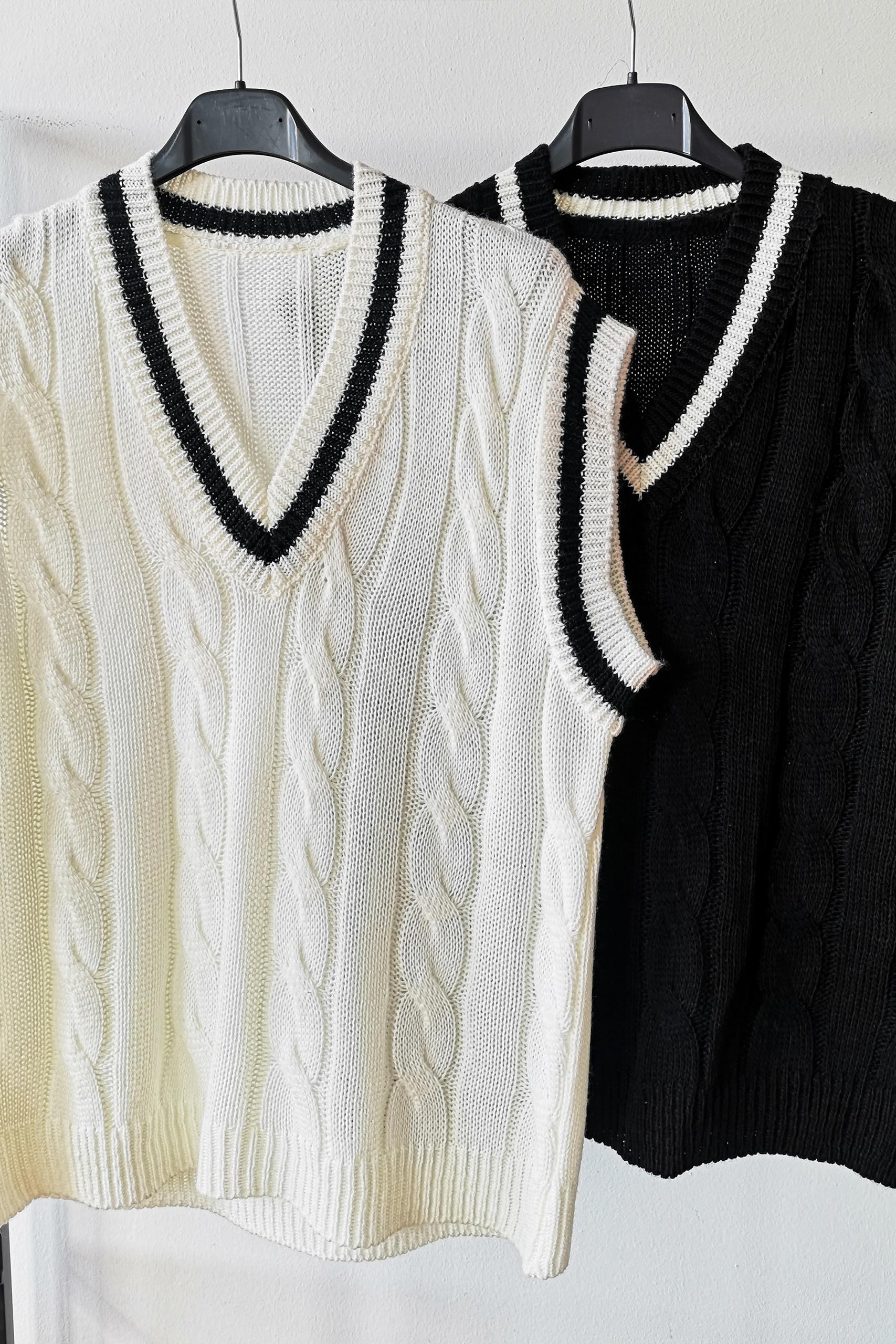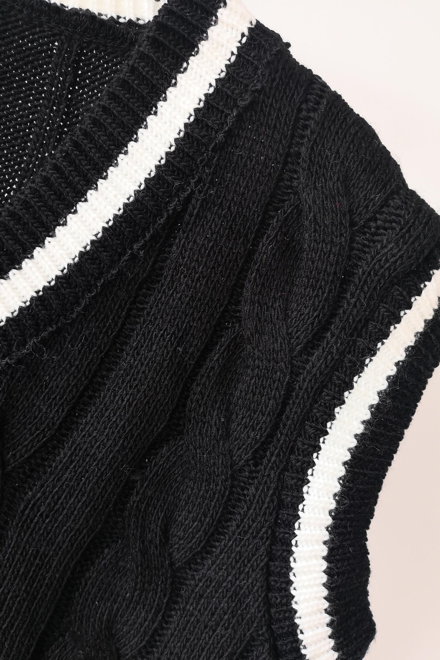 Αμάνικη καζάκα college type V neck με braid σχέδιο σε δύο χρώματα.