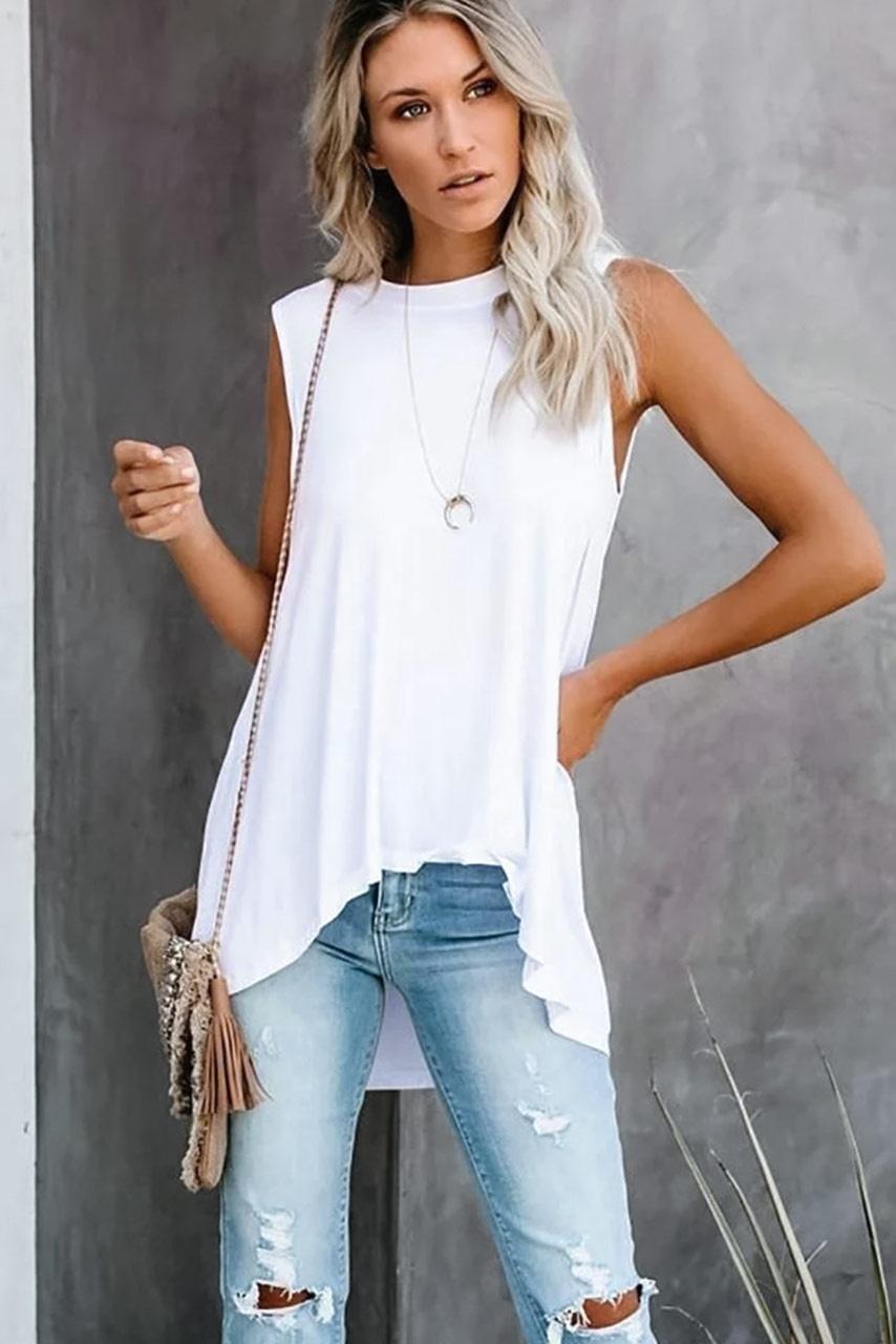All time classic top. Νέο αμάνικο τοπ με στρογγυλή λαιμόκοψη και ελαφρώς ασύμμετρη στο τελείωμα.