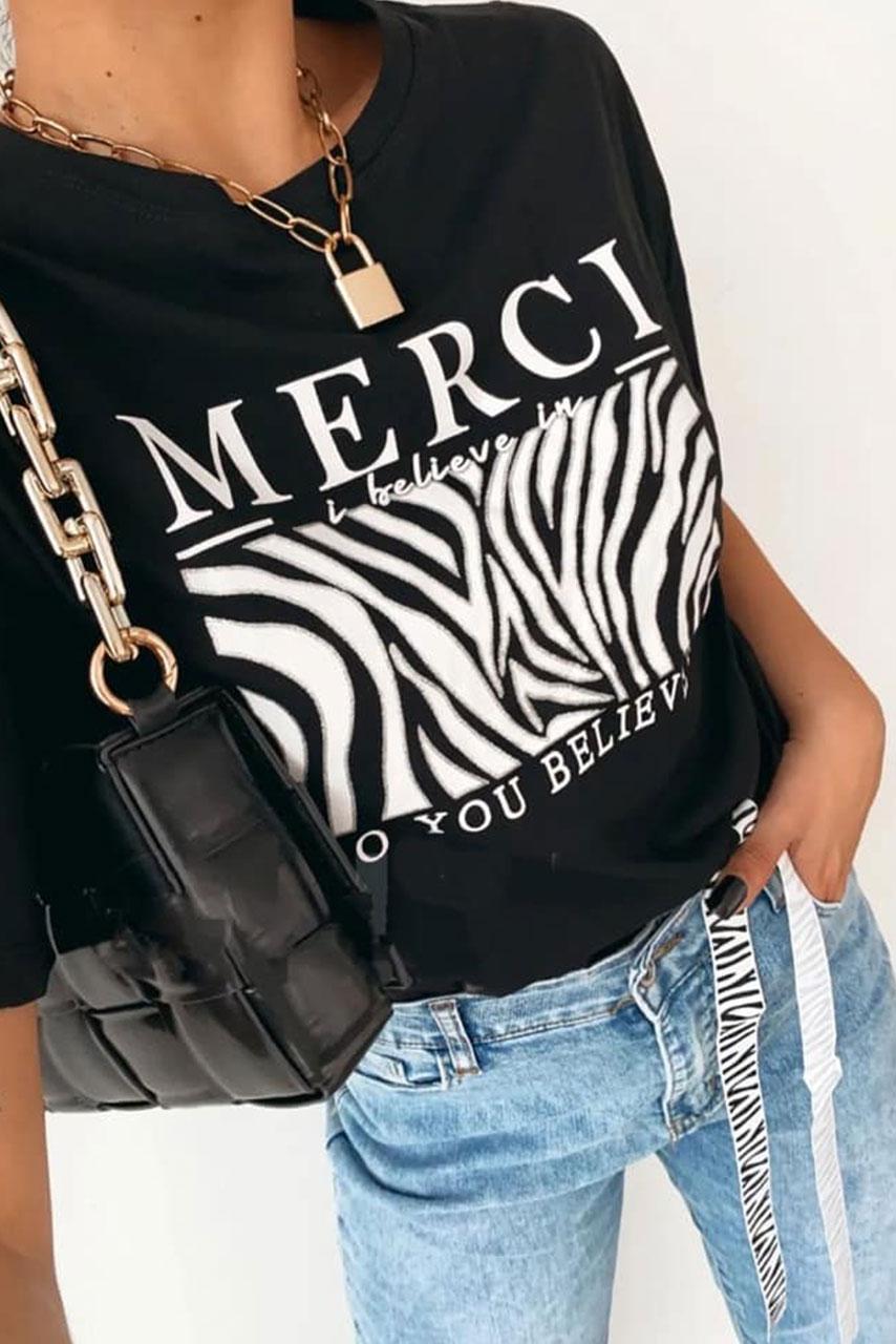 Κοντομάνικο t-shirt με στάμπα μαύρο Κοντομάνικο t-shirt με στάμπα μαύρο