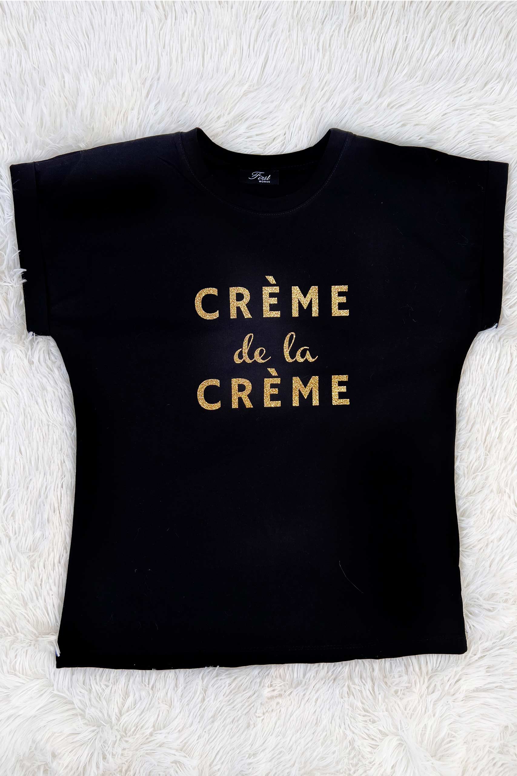 T shirt με στρογγυλή λαιμόκοψη και στάμπα creme de la creme σε δύο κλασσικές αποχρώσεις, λευκή και μαύρη.