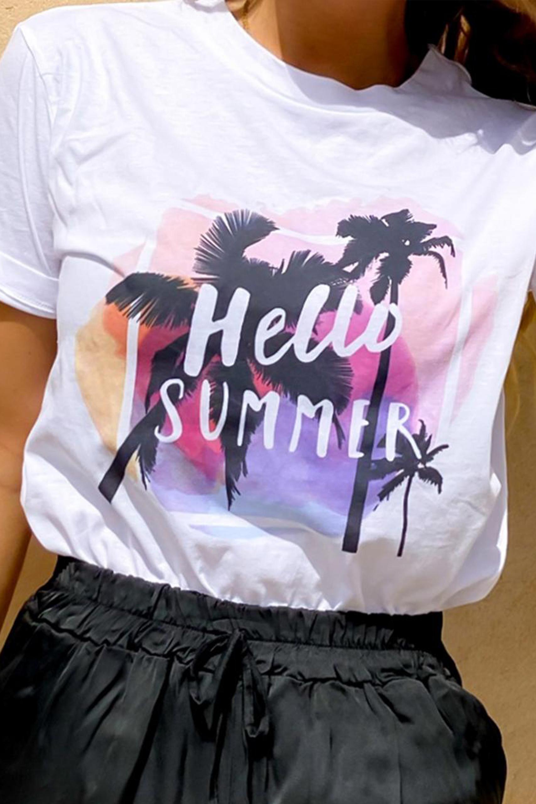 Summer print t-shirt σε λευκό χρώμα με πολύχρωμη στάμπα.