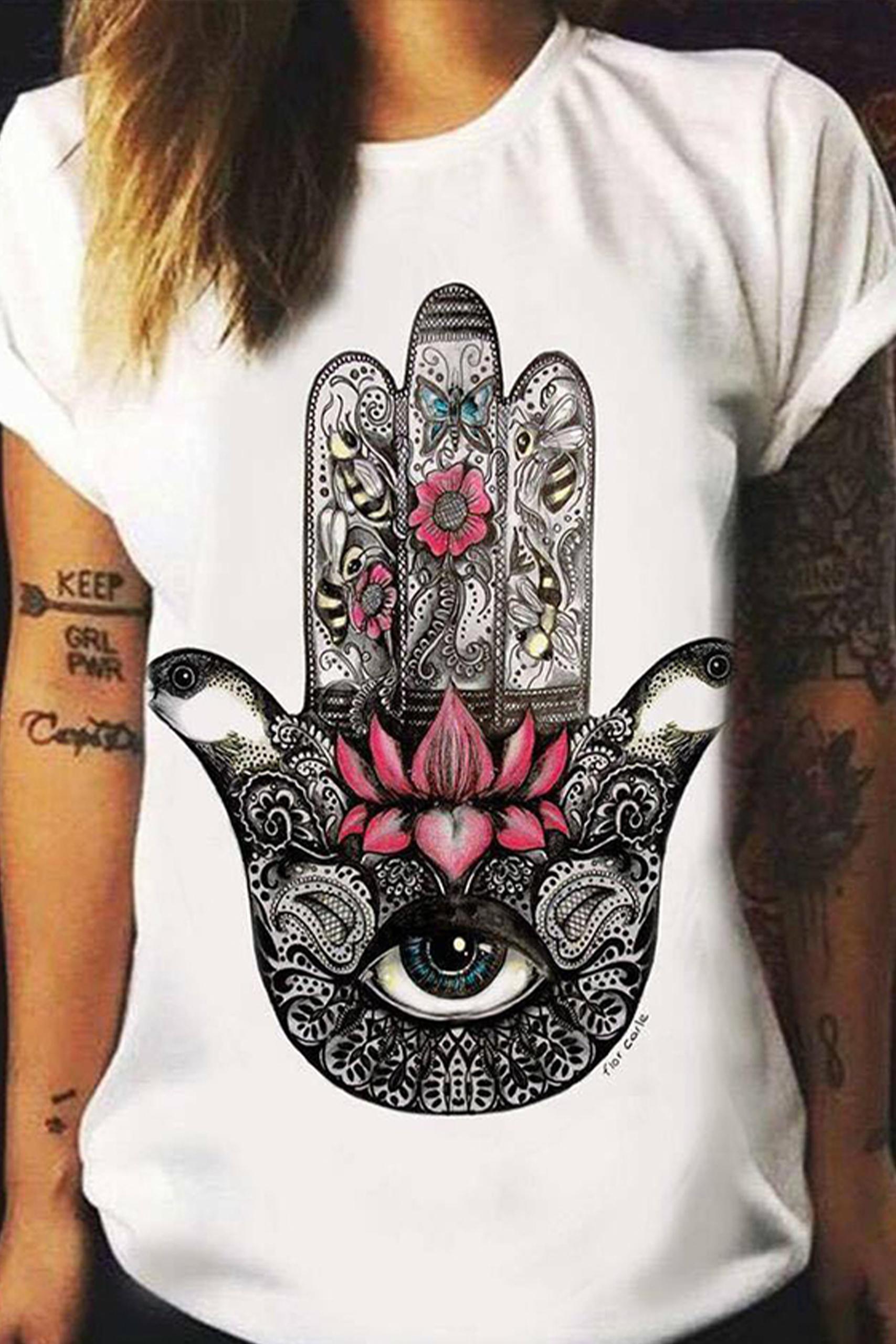 Λευκό κοντομάνικο mandala printed t shirt με μαύρη στάμπα και στρογγυλή λαιμόκοψη.