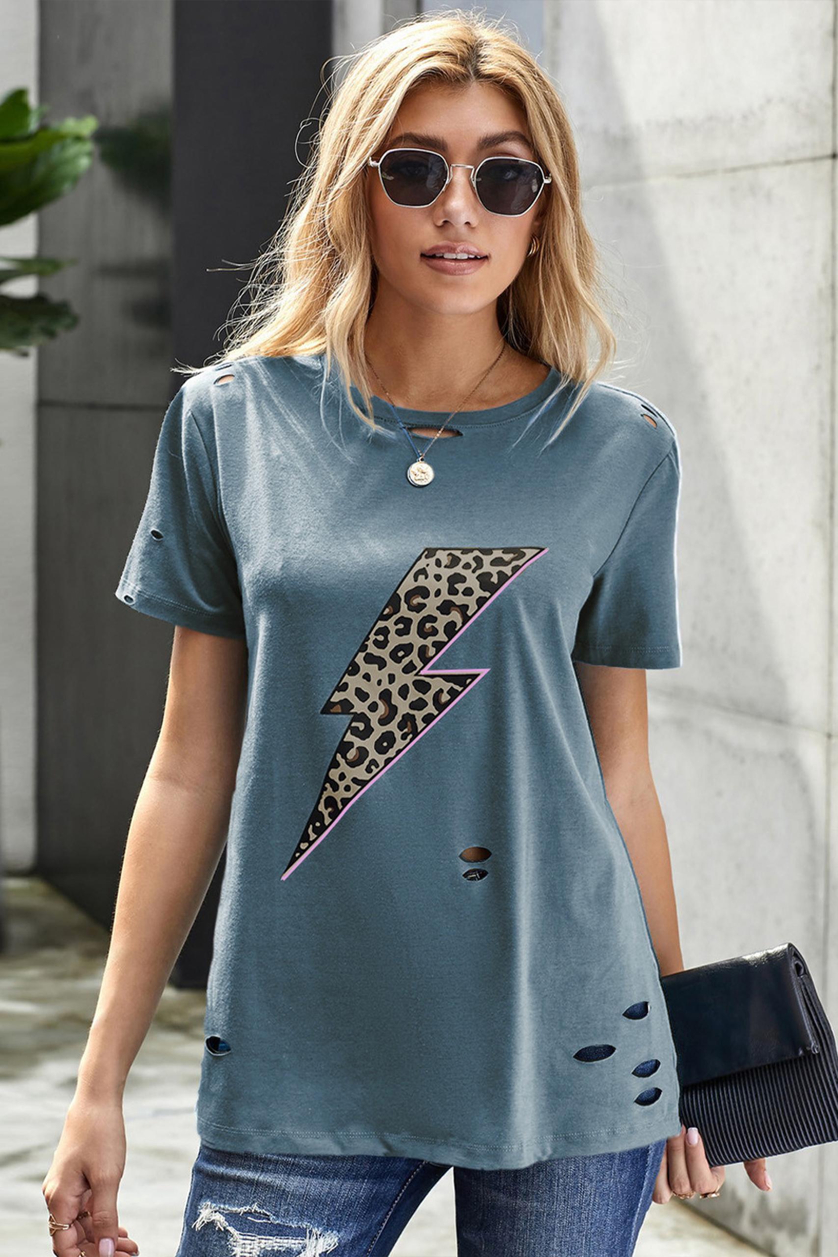 Μπλούζα με τρύπες all over και στάμπα animal print κεραυνό με ροζ φλούο λεπτομέρειες.
