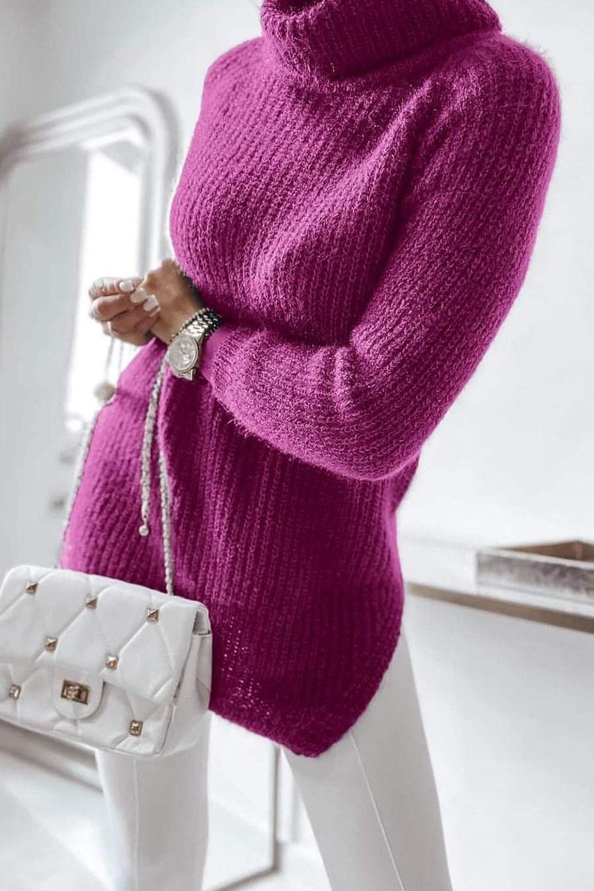 Cozy casual turtleneck ζιβάγκο μπλουζοφόρεμα για όλες τις ώρες της ημέρας σε μωβ απόχρωση.
