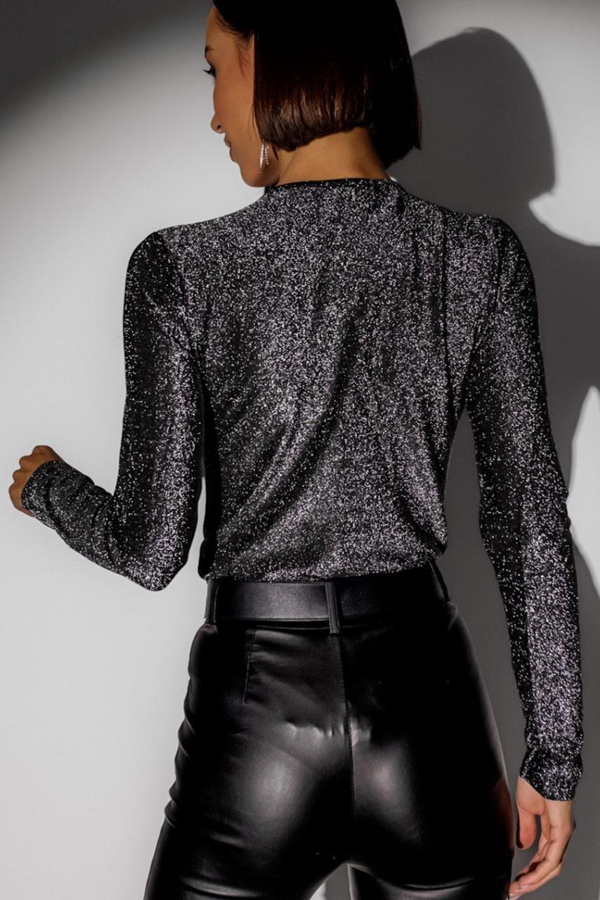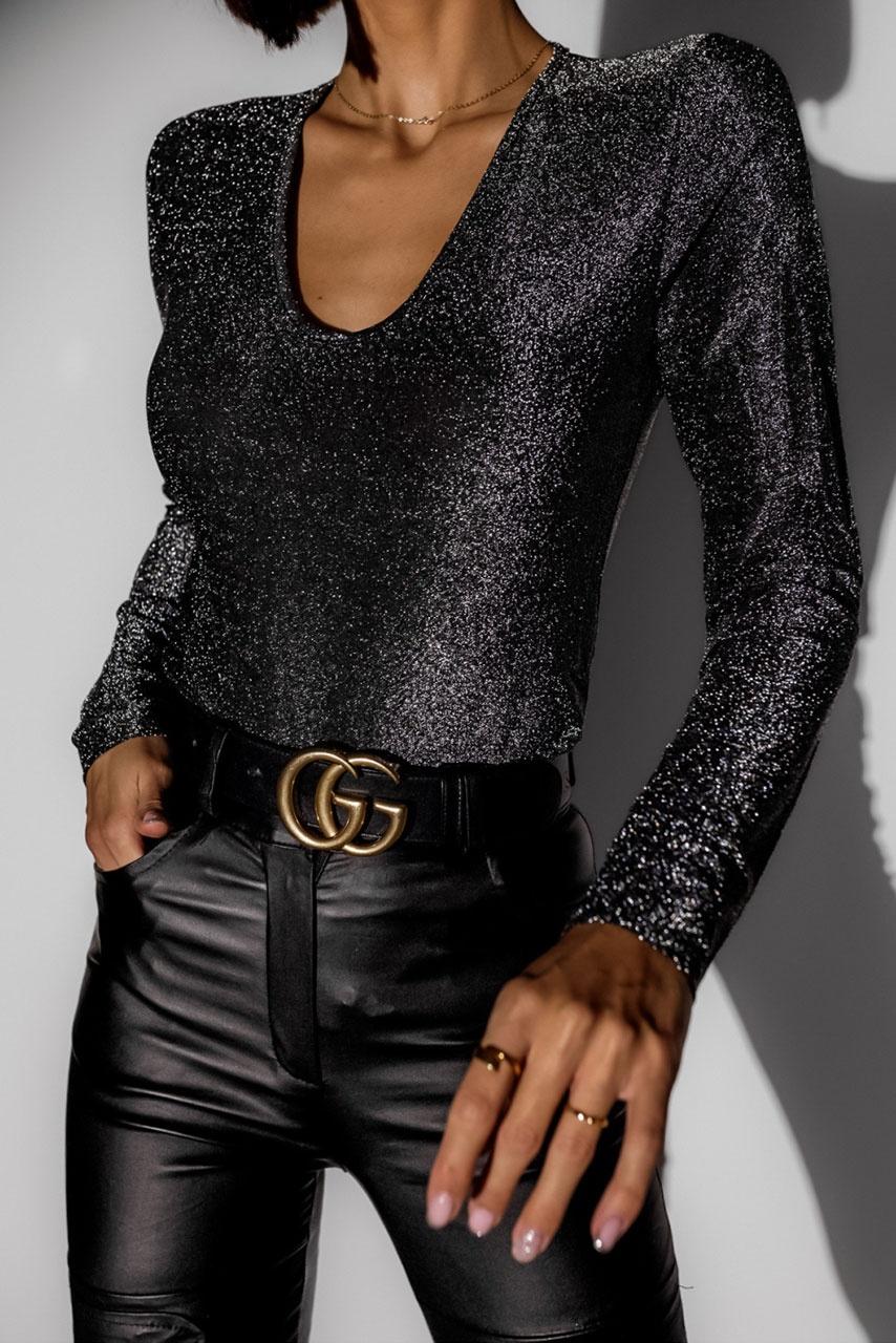 Partywear τοπ λούρεξ με V neck λαιμόκοψη και μεταλλιζέ υφή σε μαύρο χρώμα.