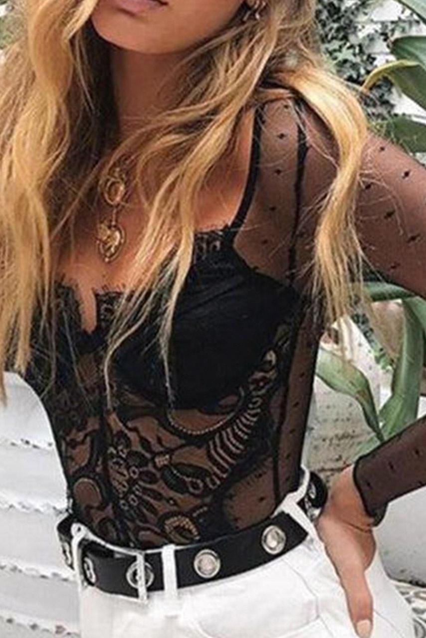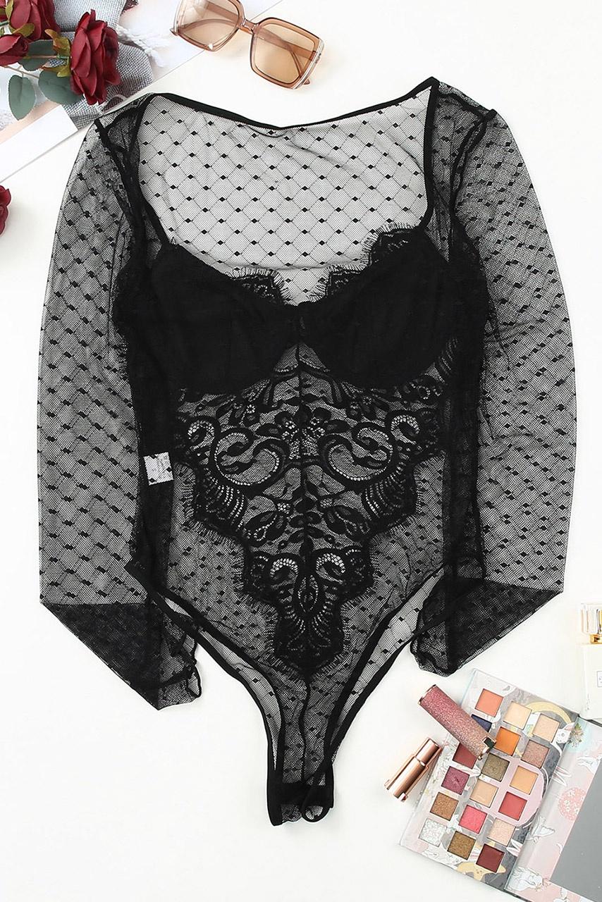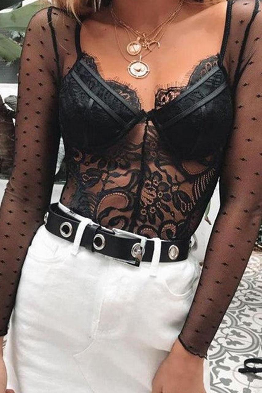 Glam vintage cut κορμάκι με διαφάνεια all over και λεπτομέρεια δαντέλας.