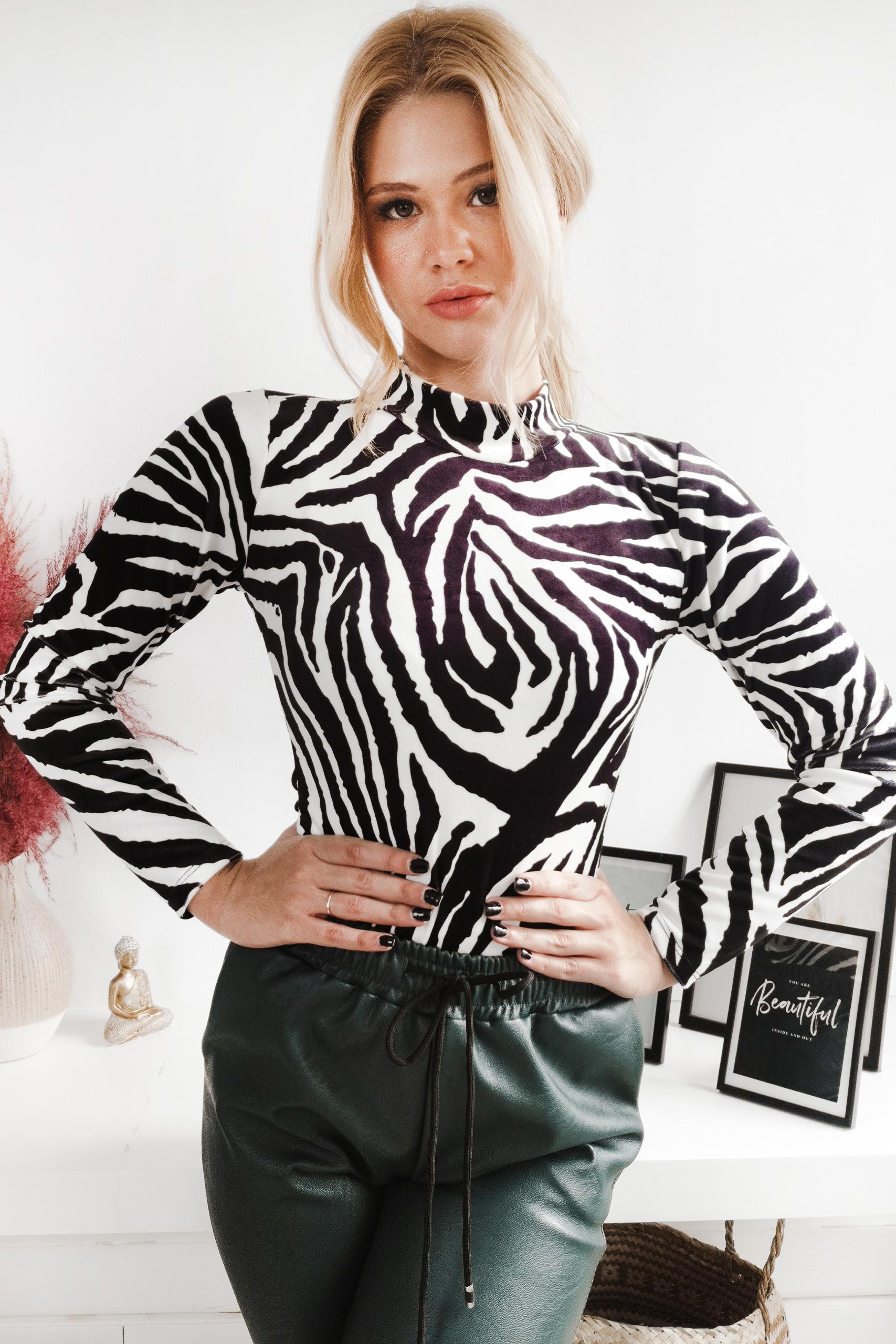 Zebra pattern turtleneck μακρυμάνικο ζιβάγκο κορμάκι σε ασπρόμαυρο χρώμα.