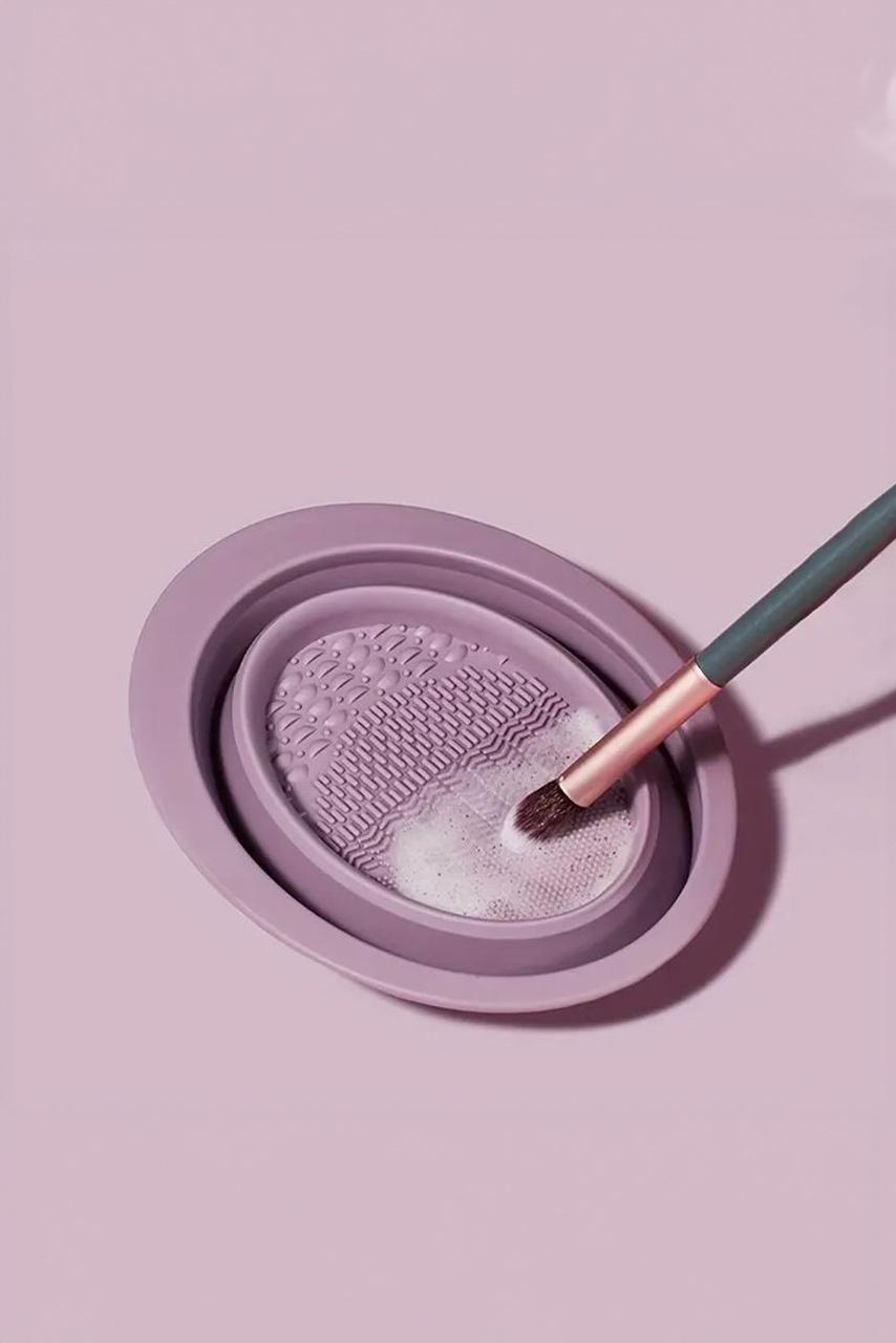 - βρέξτε τα πινέλα μακιγιάζ και απλώστε ένα ήπιο σαπούνι καθαρισμού στο Makeup Brush Scrubber