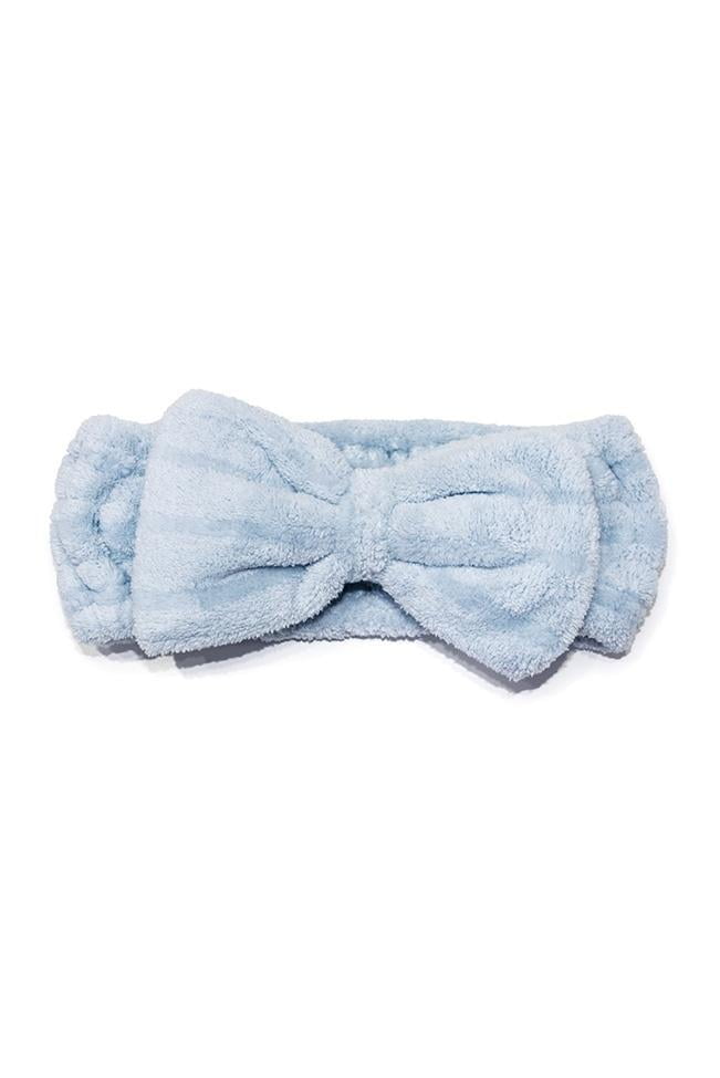 Headband γαλάζια κορδέλα με φιόγκο εξαιρετικά απαλή ιδανική για να κρατά μακριά τα μαλλιά σας ενώ απλώνετε το make up σας την αρχή της ημέρας ή για να ξεπλυθείτε και να κάνετε την περιποίηση σας το βράδυ.  Η εφαρμογή του είναι one size και είναι ελαστική.