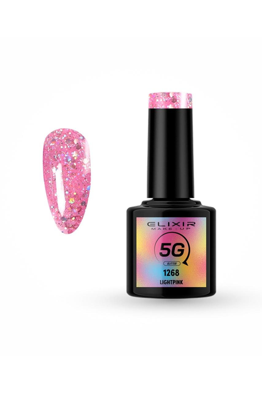 Ημιμόνιμο βερνίκι 5G Glitter σε απόχρωση LightPink από την Elixir Make Up, με καινοτομική φόρμουλα του επαγγελματικού βερνικιού μακράς διάρκειας.