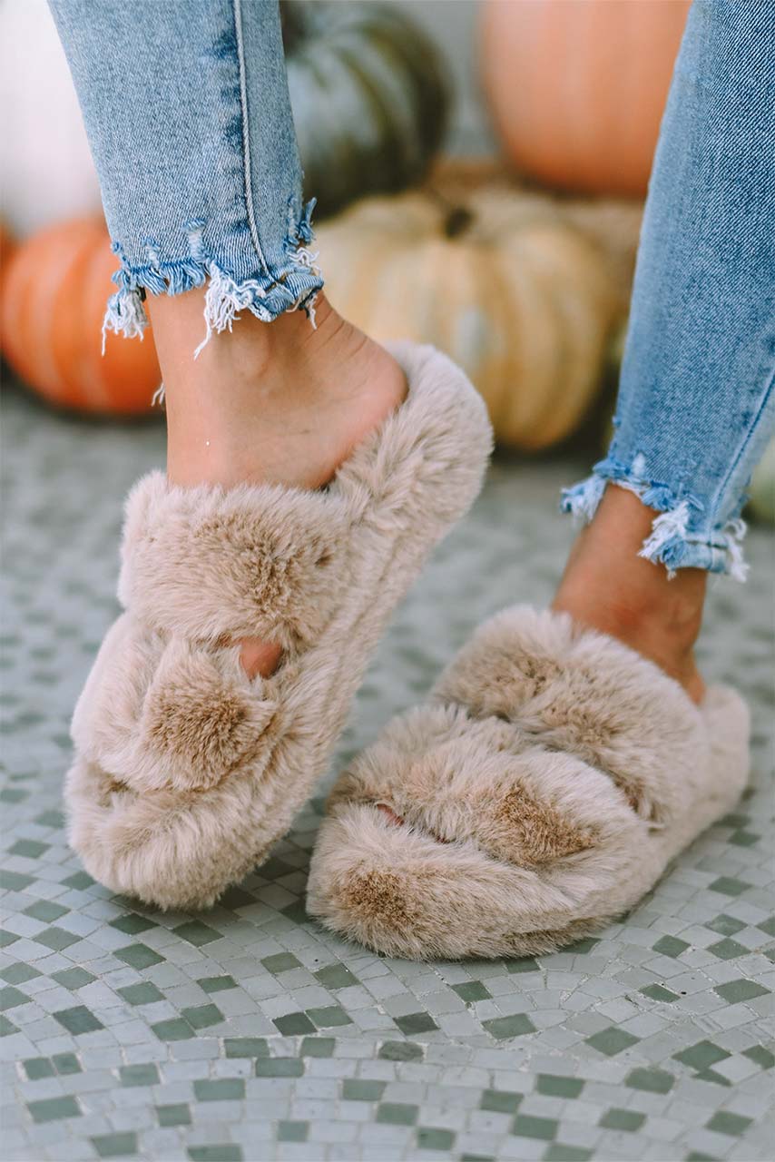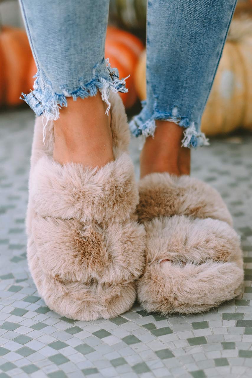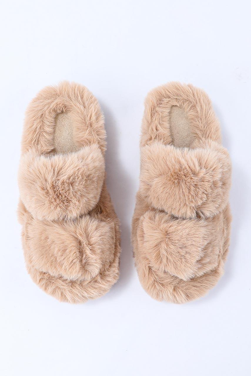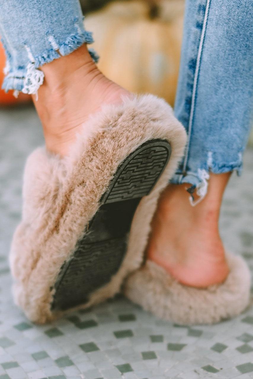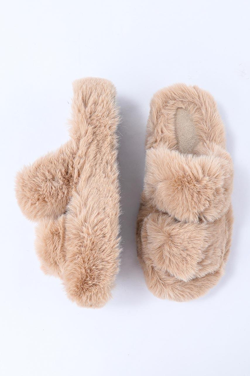 Υπέροχα ζεστά και άνετα γούνινα παντοφλάκια σε μπεζ απόχρωση.