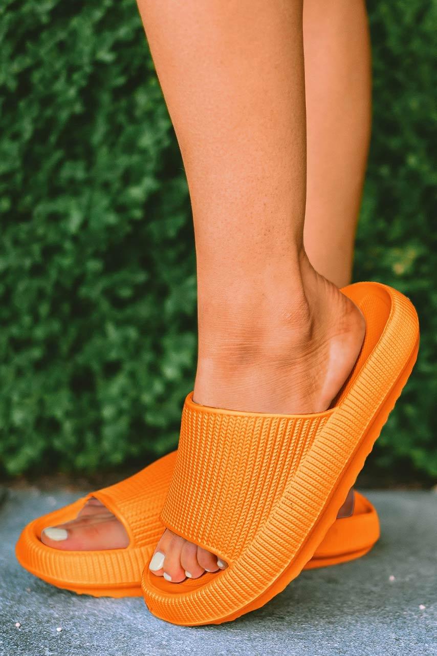 Το απόλυτο trend της σεζόν, casual μονόχρωμες slider παντόφλες με χοντρή ανάλαφρη σόλα, φαρδιά trendy φάσα, ανάγλυφο σχέδιο και hollow out σε πορτοκαλί απόχρωση. Θα σας συνοδέψουν σε όλες τις βόλτες σας στην παραλία και όχι μόνο!
