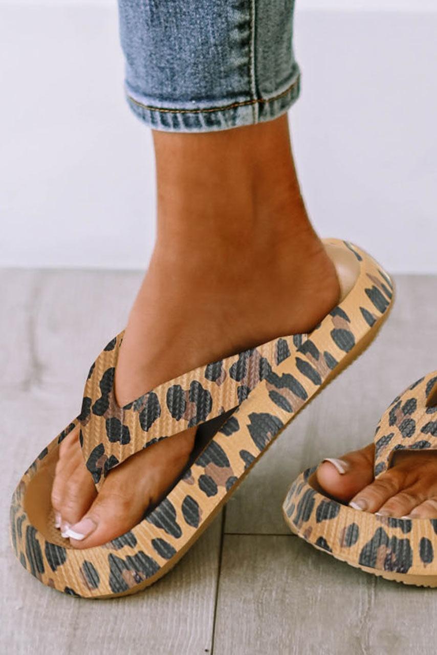 Leopard παντόφλες χοντρές με σόλα και διχάλα για stylish και casual εμφανίσεις.