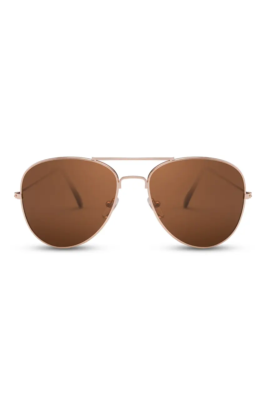 Δώσε αέρα διαχρονικής κομψότητας στο look σου με τα χρυσά aviator γυαλιά ηλίου, κατασκευασμένα από premium μέταλλο και φακούς 100% ανακυκλωμένου rPMMA-L. Το κομψό καφέ χρώμα των φακών προσθέτει μια ανεπιτήδευτη πολυτέλεια σε κάθε σου εμφάνιση.