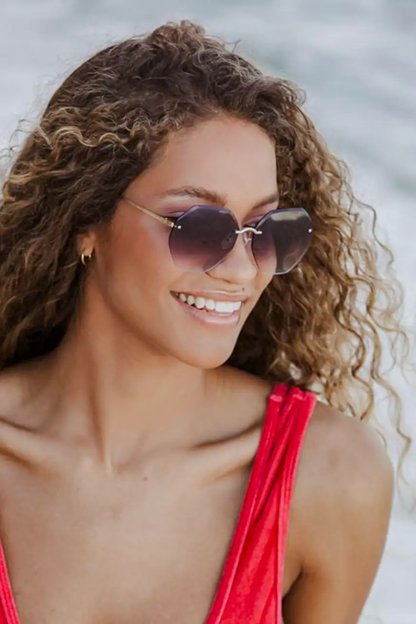 Τα μώβ γυαλιά ηλίου Geometric με χρυσό μεταλλικό σκελετό και πολυγωνικό σχήμα είναι η απόλυτη επιλογή για σύγχρονη κομψότητα. Οι μίνιμαλ γραμμές και οι μοβ πολυανθρακικοί φακοί προσφέρουν 100% UV προστασία κατηγορίας 3, συνδυάζοντας απόλυτα την αισθητική με τη λειτουργικότητα. Ιδανικά για γυναίκες που αγαπούν το design-forward look και την ελαφριά κατασκευή.