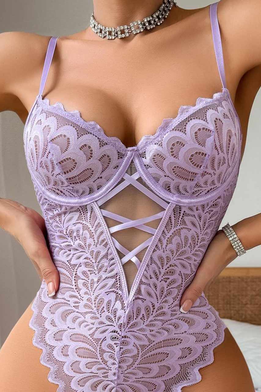 Κορμάκι lace up με φλοράλ δαντέλα σε πλέξιμο μοτίβο avatar.