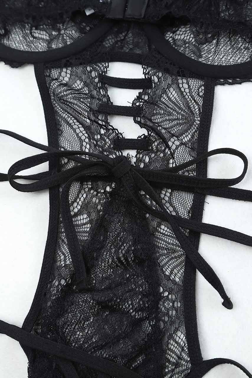 Lacy balconette μαύρο teddy ολόσωμο με cut outs all over, straps και δαντέλα, ιδανικό για ιδιαίτερες εμφανίσεις.