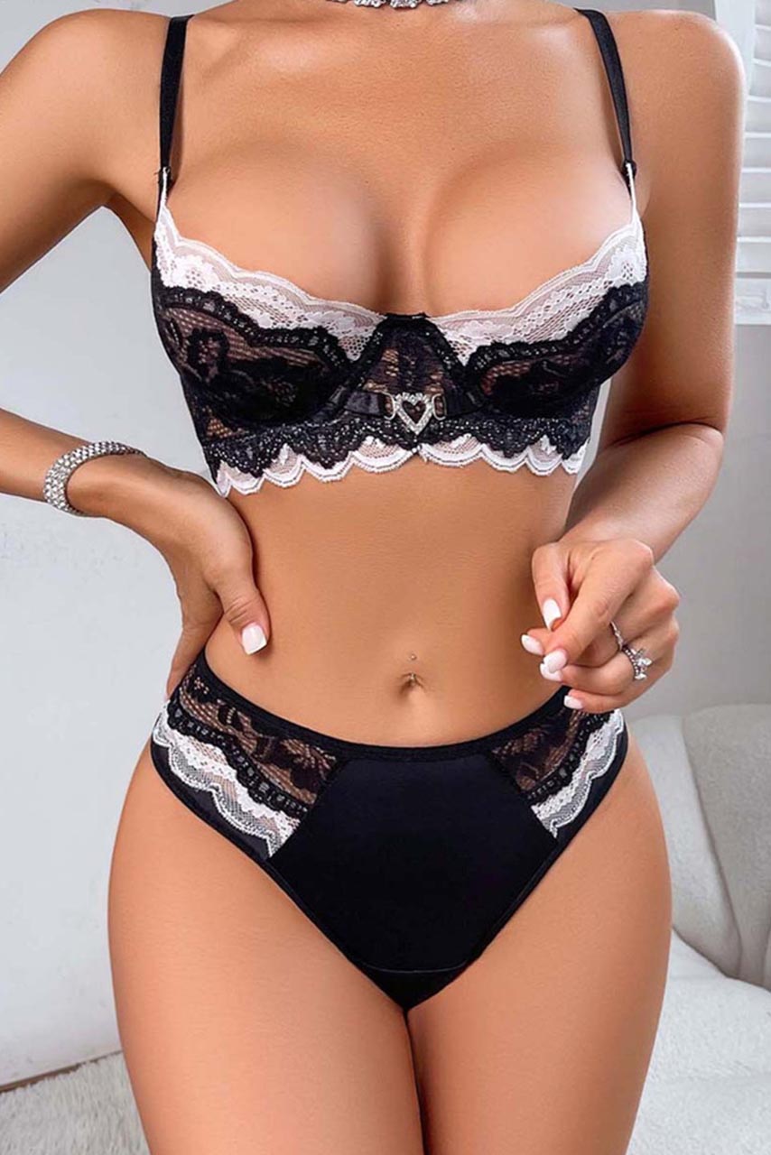Ασπρόμαυρο lace σετάκι με καρδούλα