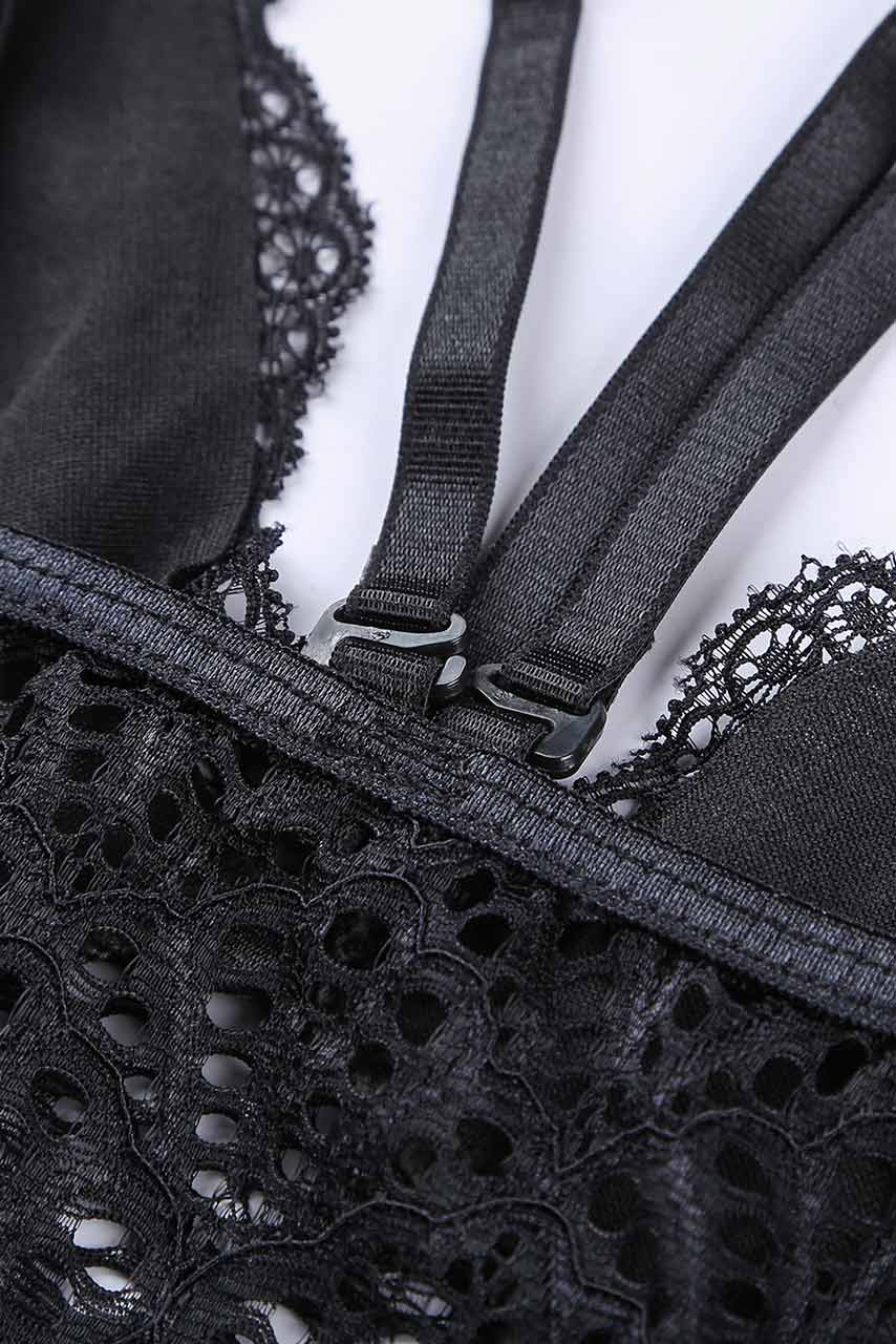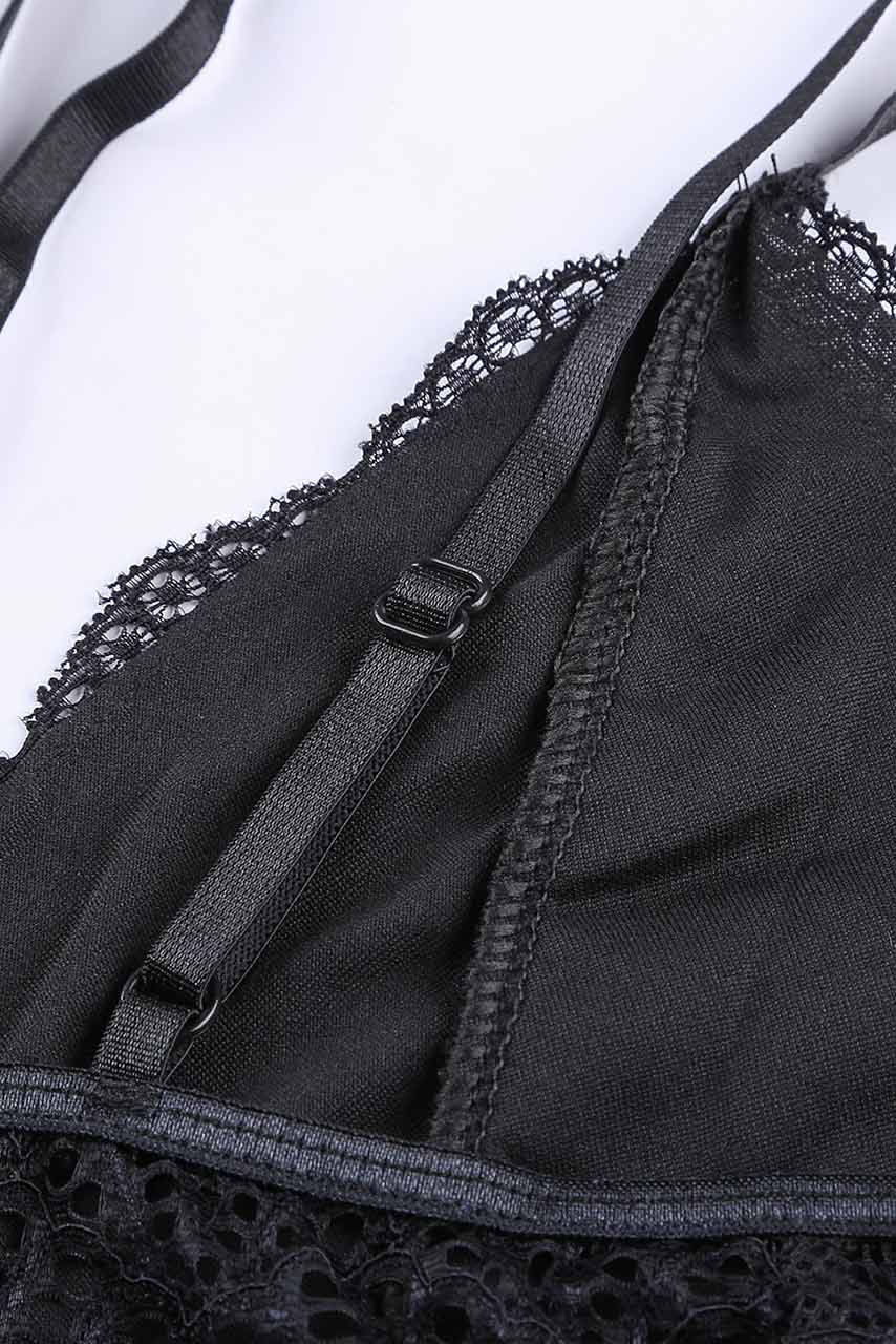 Strappy bra top σετ με chocker και all over φλοραλ δαντέλα σε μαύρη απόχρωση με low rise ασορτί brazil σλιπ.