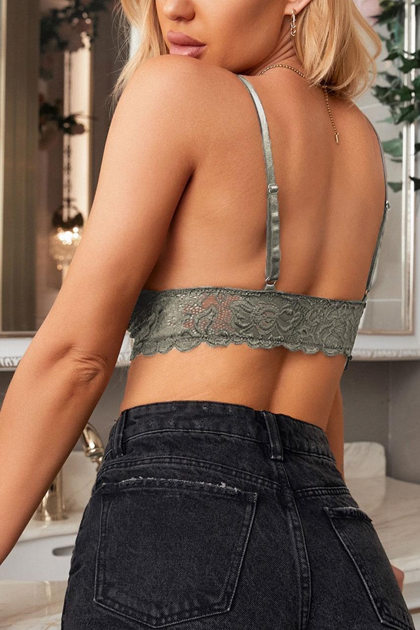 Romantic n girly bralette σουτιέν με δαντέλα σε χακί χρώμα με cut outs και κορδόνια on top.