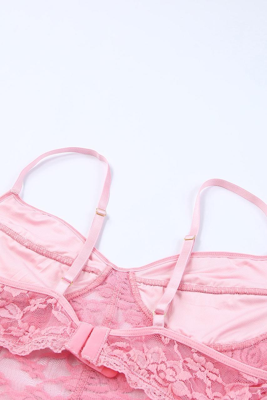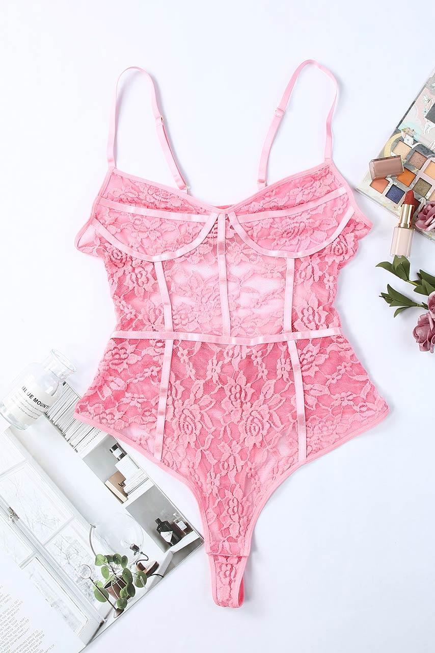 Ρετρό glam corset style bodysuit σε ροζ απόχρωση με δαντέλα all over.