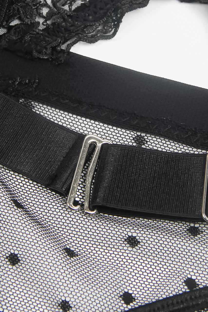 Μαύρο ολόσωμο lingerie polka dot με ζαρτιέρες