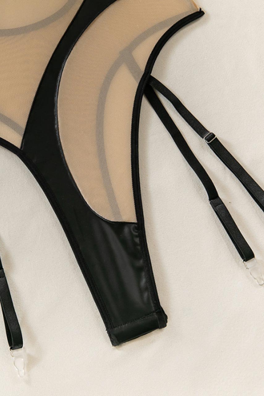 Ολόσωμο mesh κορμάκι με διαφάνεια και δερματίνη