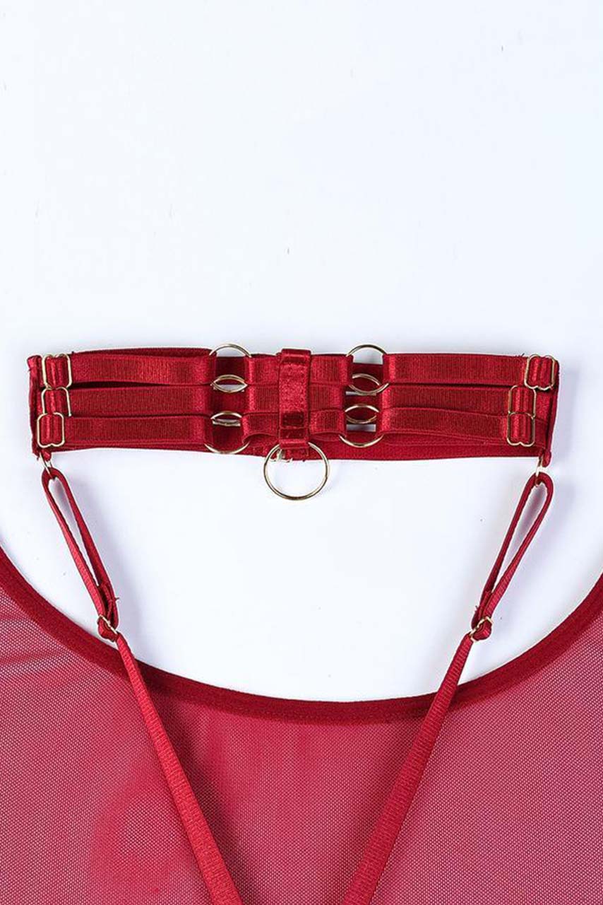 Glam διάφανο κορμάκι με ζαρτιέρες σε μπορντώ