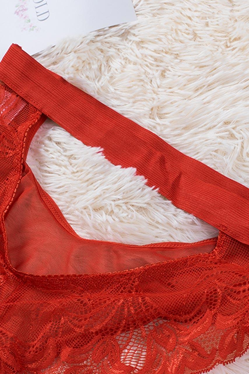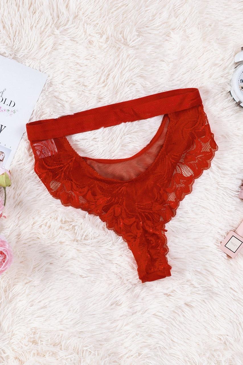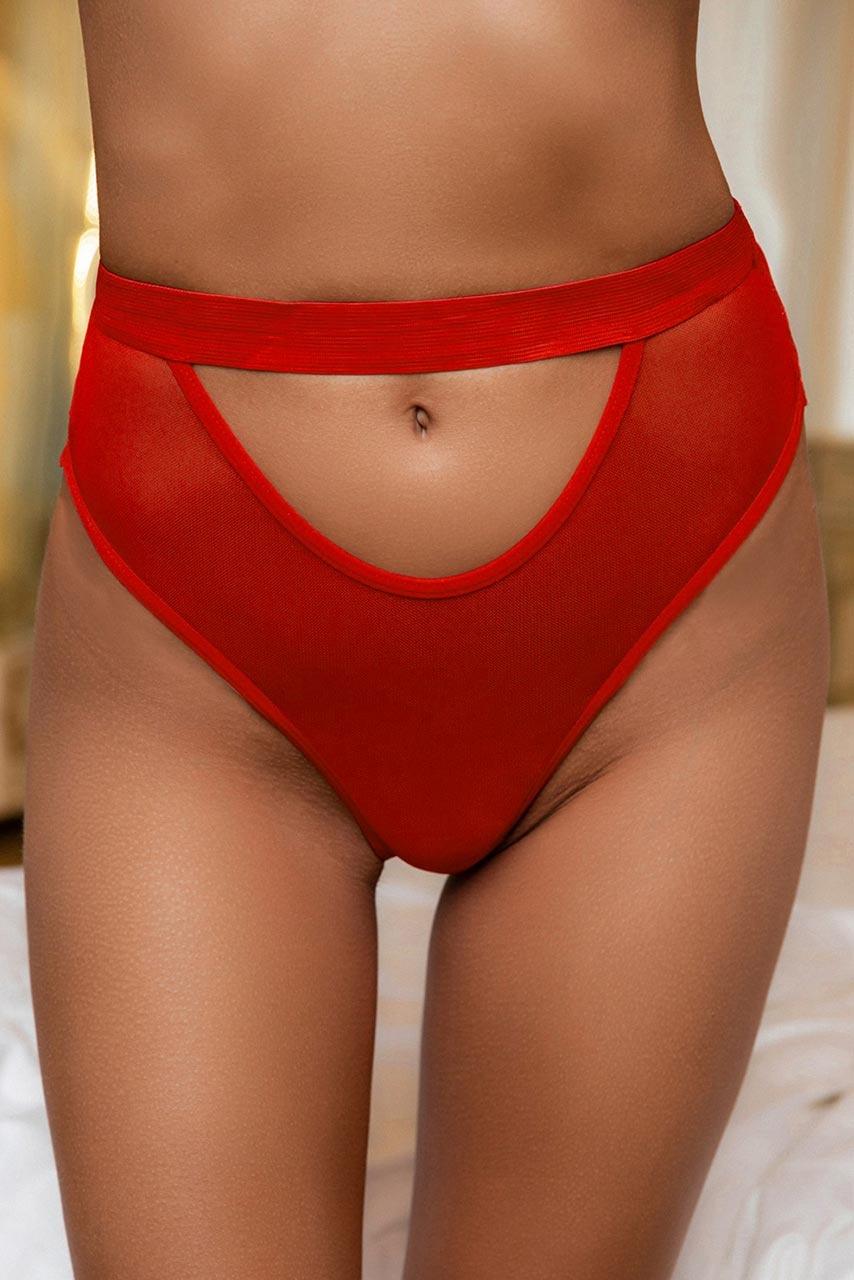 Κόκκινο ψηλόμεσο contrast σλιπ με brazil κόψιμο, διαφάνεια μπροστά, δαντέλα πίσω και εντυπωσιακά cut outs all over.