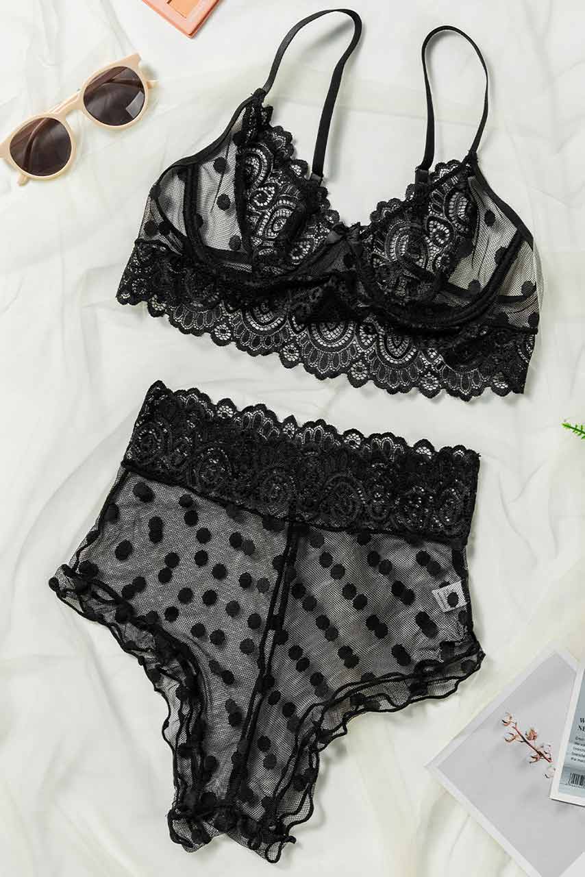 Retro high waisted σετάκι σε mesh υφή συνδυασμένα με πουά μοτίβα.