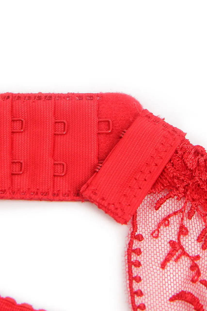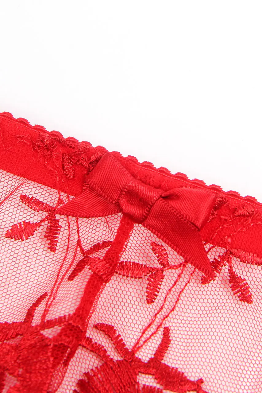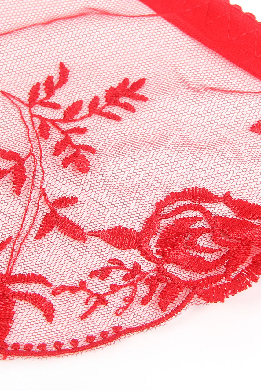 Κόκκινο embroidery lace garter σλιπ με ζαρτιέρες