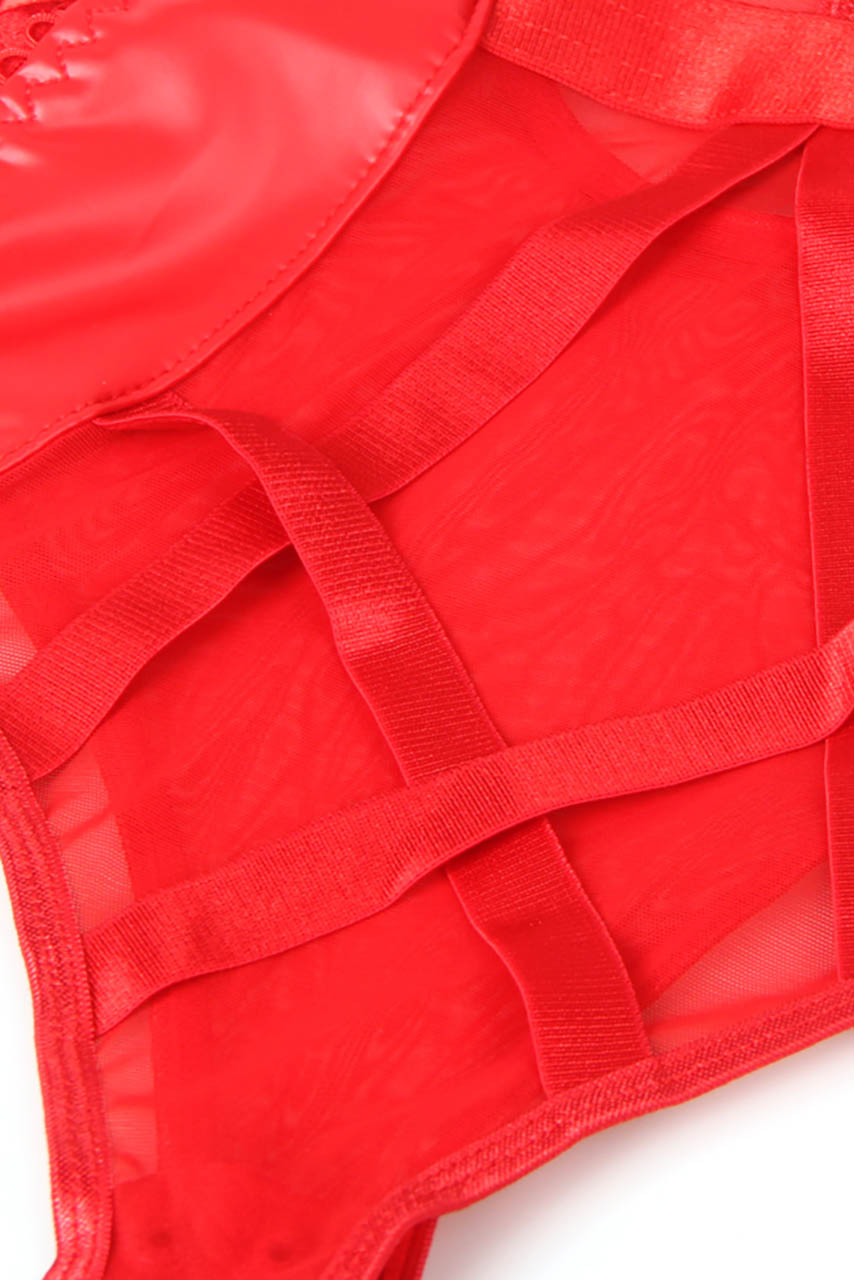 Μια τολμηρή δήλωση αποπλάνησης. Το δερμάτινο κορμάκι με διαφάνεια είναι κάτι παραπάνω από ένα lingerie κομμάτι — είναι μια ωδή στην αισθησιακή αυτοπεποίθηση. Το faux δέρμα στο μπούστο σε συνδυασμό με τις διαφανείς λεπτομέρειες αποκαλύπτει όσο χρειάζεται, ενώ τα πλάγια κορδόνια αγκαλιάζουν τη σιλουέτα με απόλυτο έλεγχο. Οι ενισχυμένες μπανέλες προσφέρουν στήριξη και sexy push-up αποτέλεσμα, ενώ οι ρυθμιζόμενες τιράντες και τα garter straps απογειώνουν τη φαντασία.